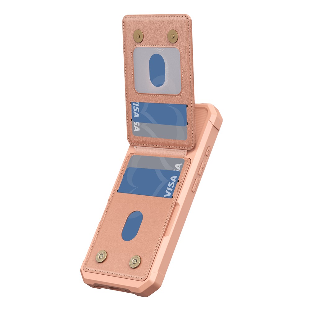 - Hands-free Kickstand The vertical flip card holder can be as a kickstand, providing a hands-free viewing at a comfortable angle