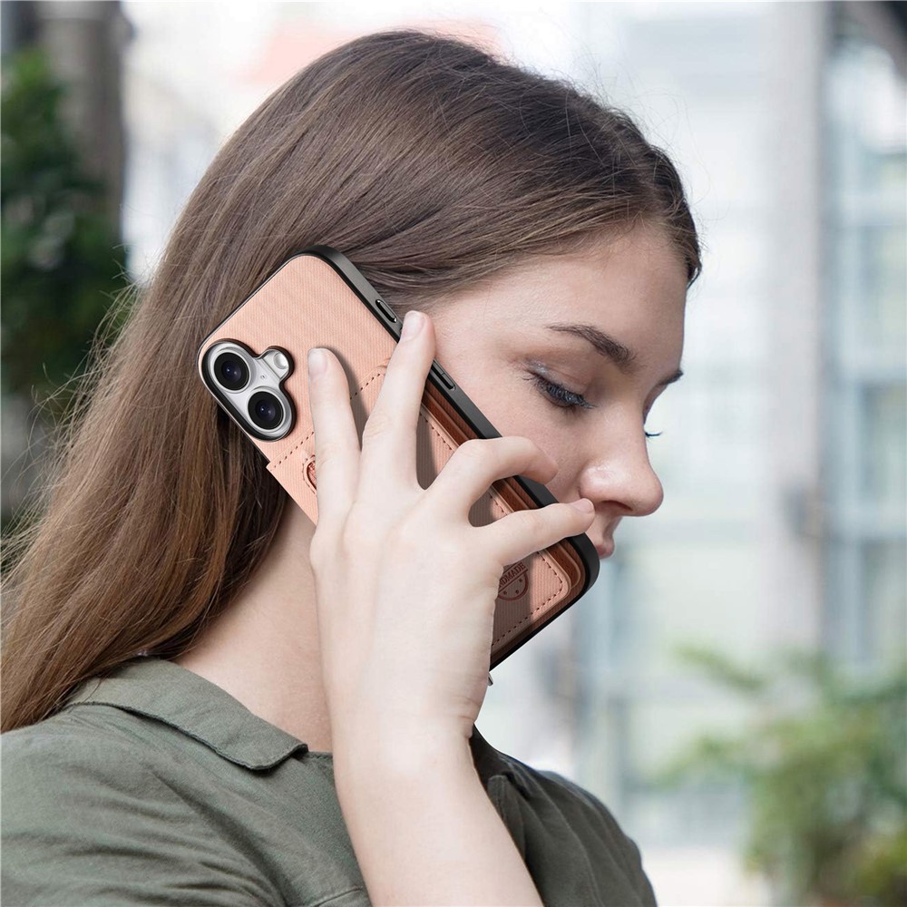 • For iPhone 17 Case Zipper Card Holder Kickstand Jeans Cloth Texture Leather Back Cover - Brown