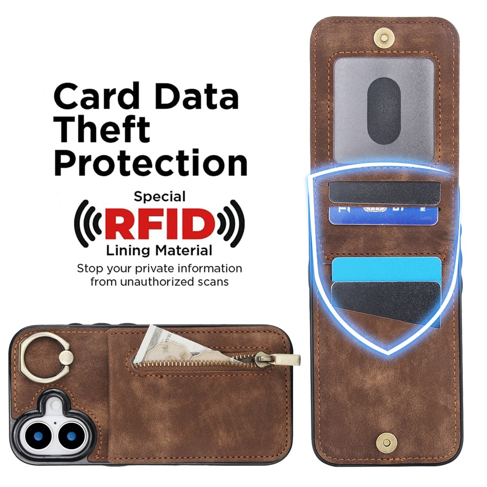 - Built-In Wallet with Zipper Includes card slots and a zippered wallet, allowing you to carry your ID, bank cards, and cash conveniently