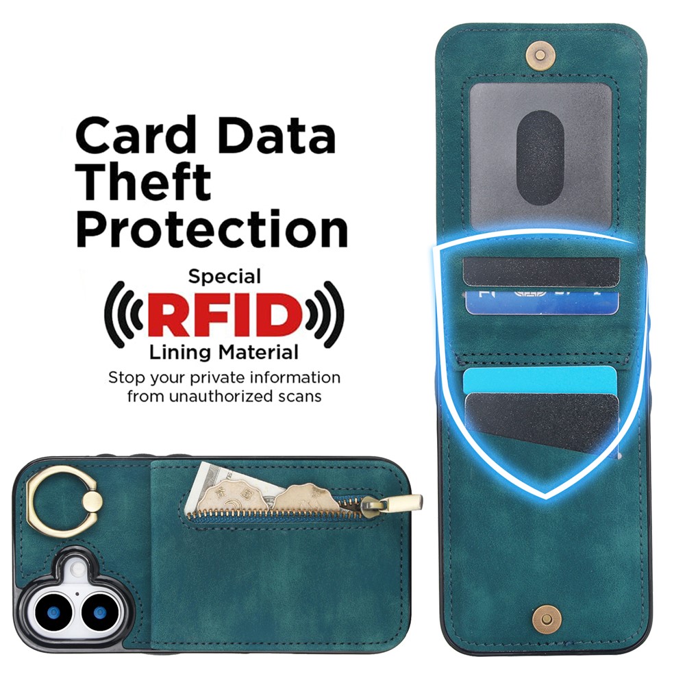- Built-In Wallet with Zipper Includes card slots and a zippered wallet, allowing you to carry your ID, bank cards, and cash conveniently