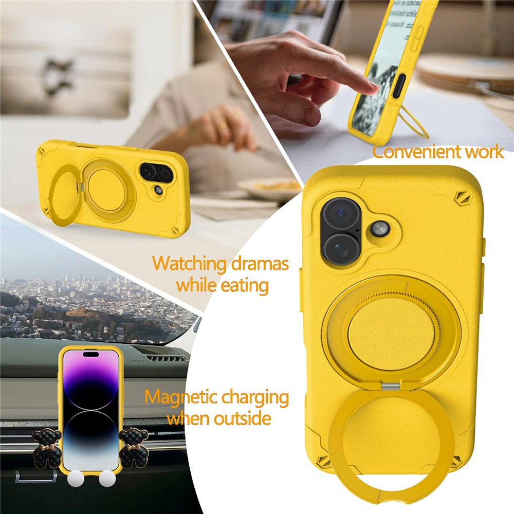 - 360° Rotating Kickstand Equipped with a 360-degree rotating aluminum alloy kickstand, this case allows for hands-free viewing at multiple angles, perfect for watching videos or video calls.