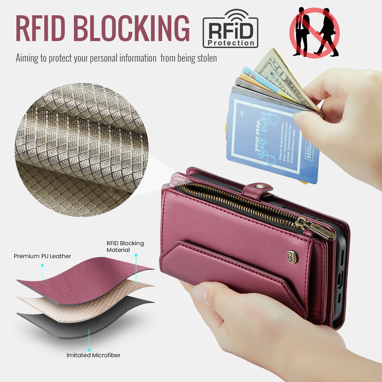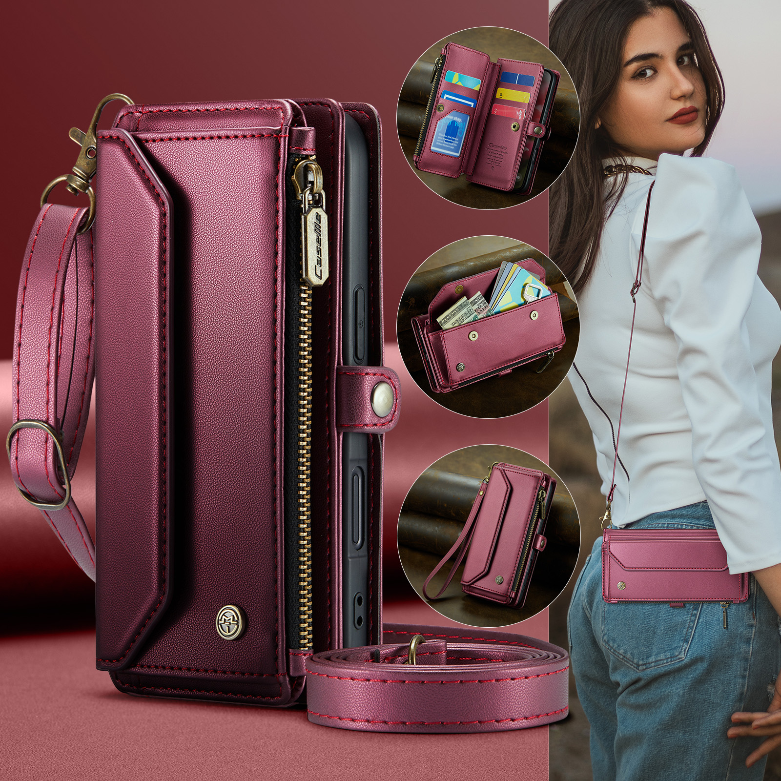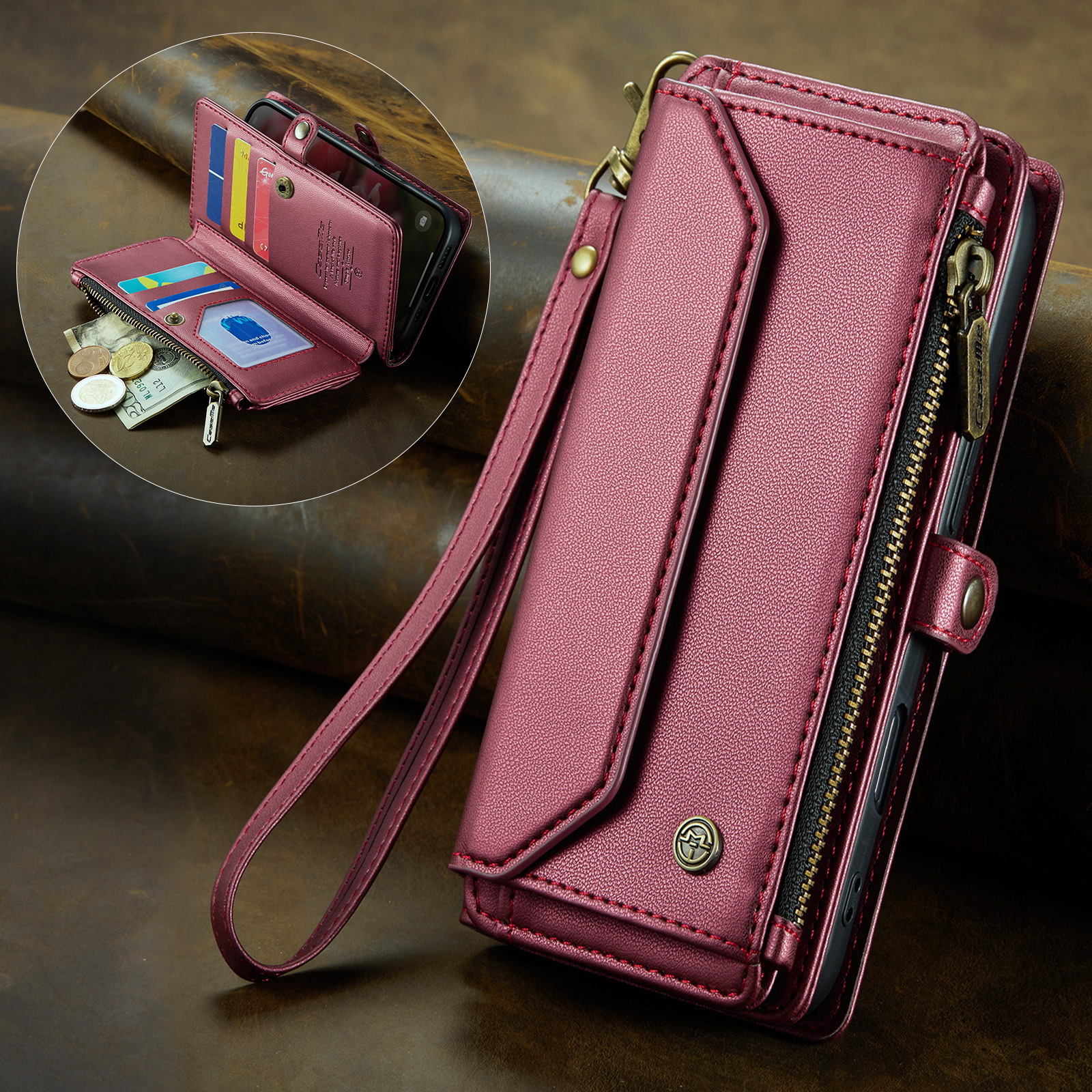 For iPhone 17 Leather Case CASEME C36 Zipper 10 Card Slots Phone Cover with Straps – Red