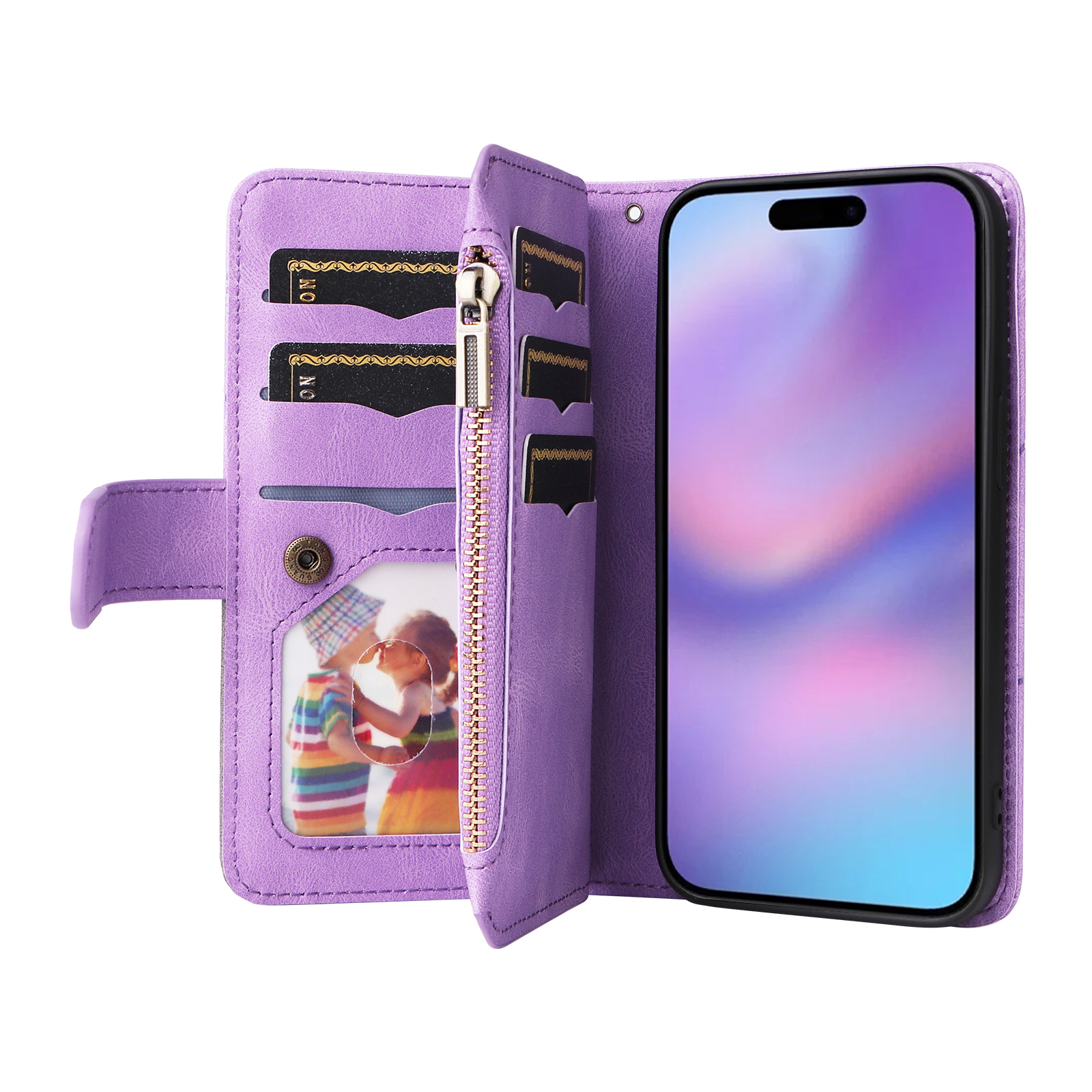 - Wallet and Card Slot Design With 8 card slots + 1 photo slot + 1 zipper pocket, providing ample storage space