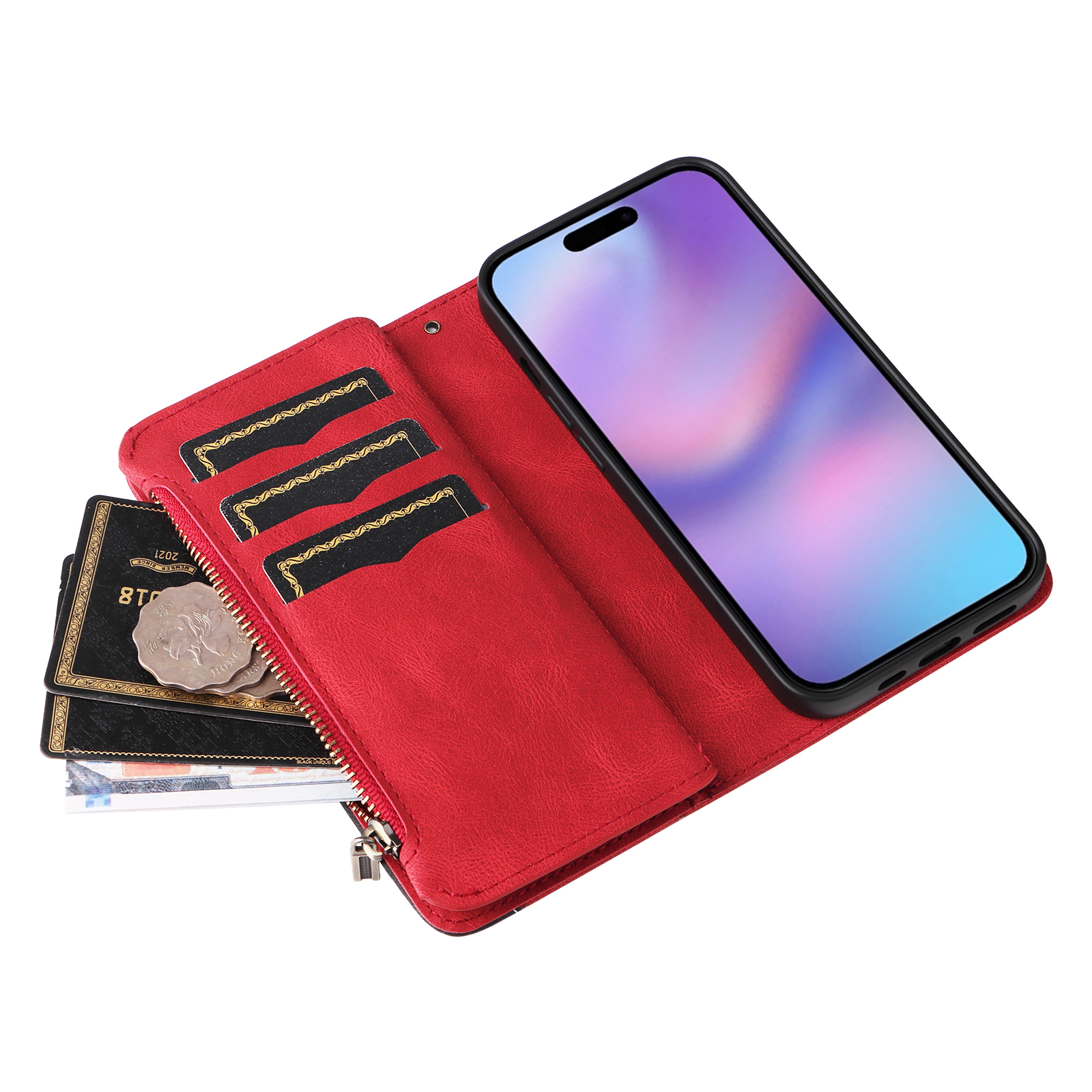 - Wallet and Card Slot Design With 8 card slots + 1 photo slot + 1 zipper pocket, providing ample storage space