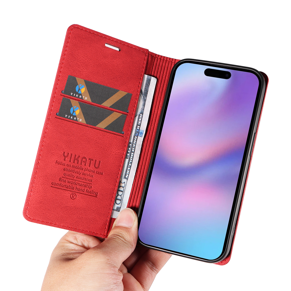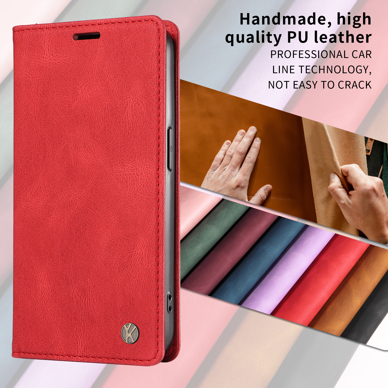 - Premium Material The exterior Skin-touch feel PU leather provides a refined and sophisticated look, while the interior matte TPU ensures your phone is securely held in place