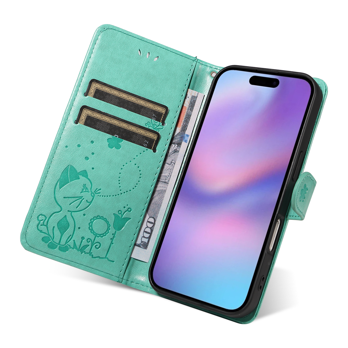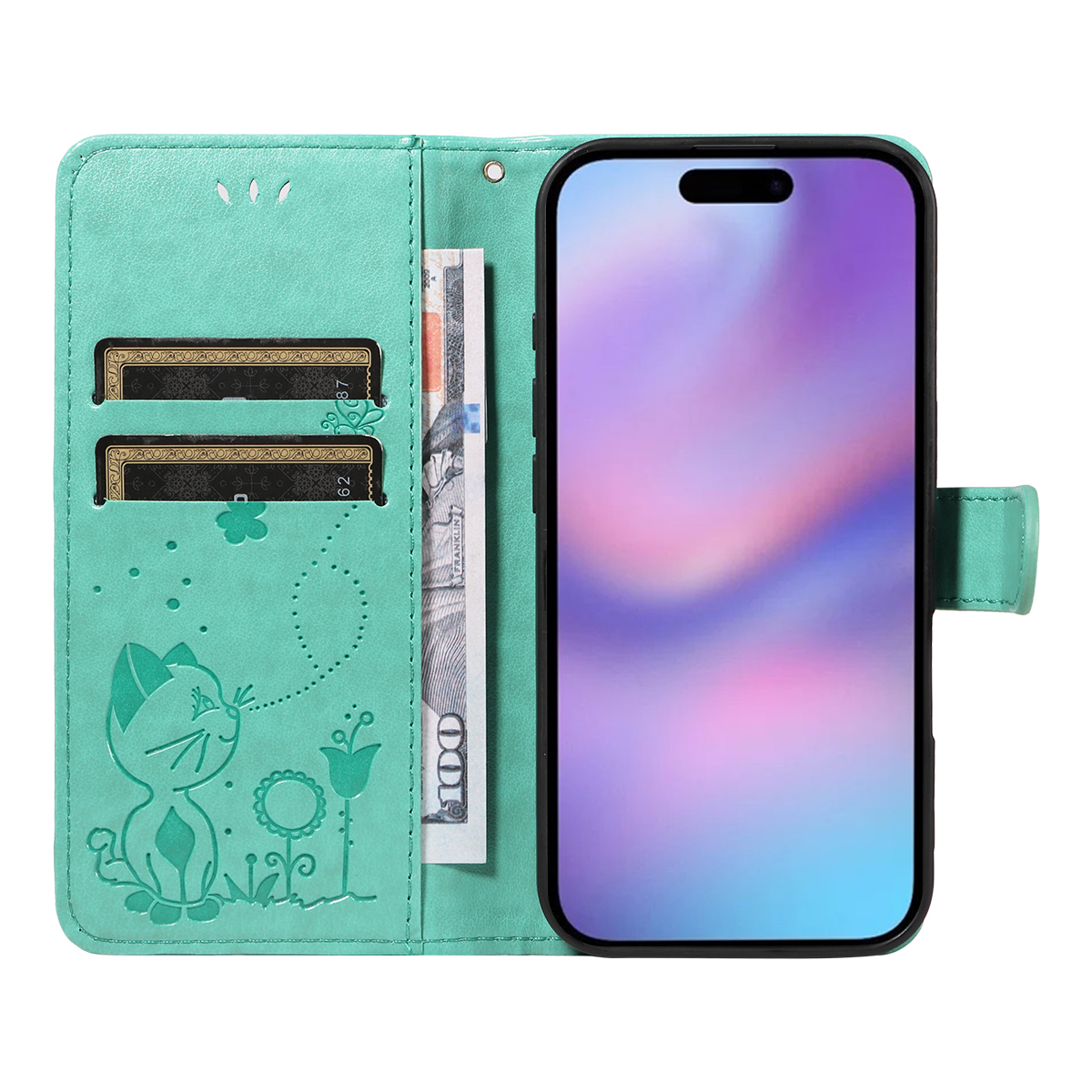 - Imprinted with Elegant Pattern Features a stunning cat and bee pattern imprinted design on the front cover and the inner card slots area, adding a touch of luxury and uniqueness