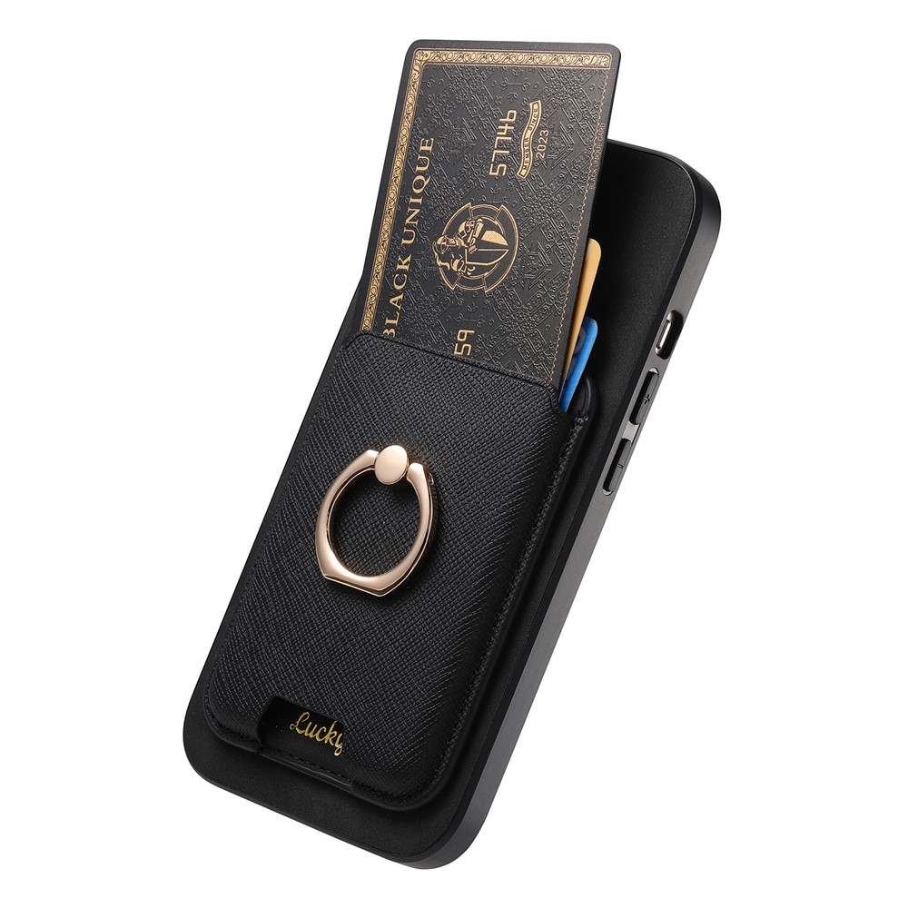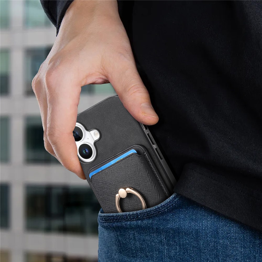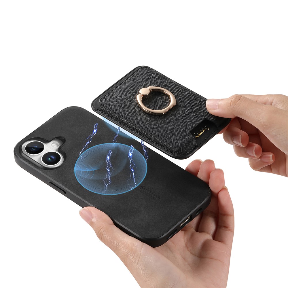 For iPhone 17 Magnetic Case Detachable Card Bag Leather Back Cover with Kickstand – Black