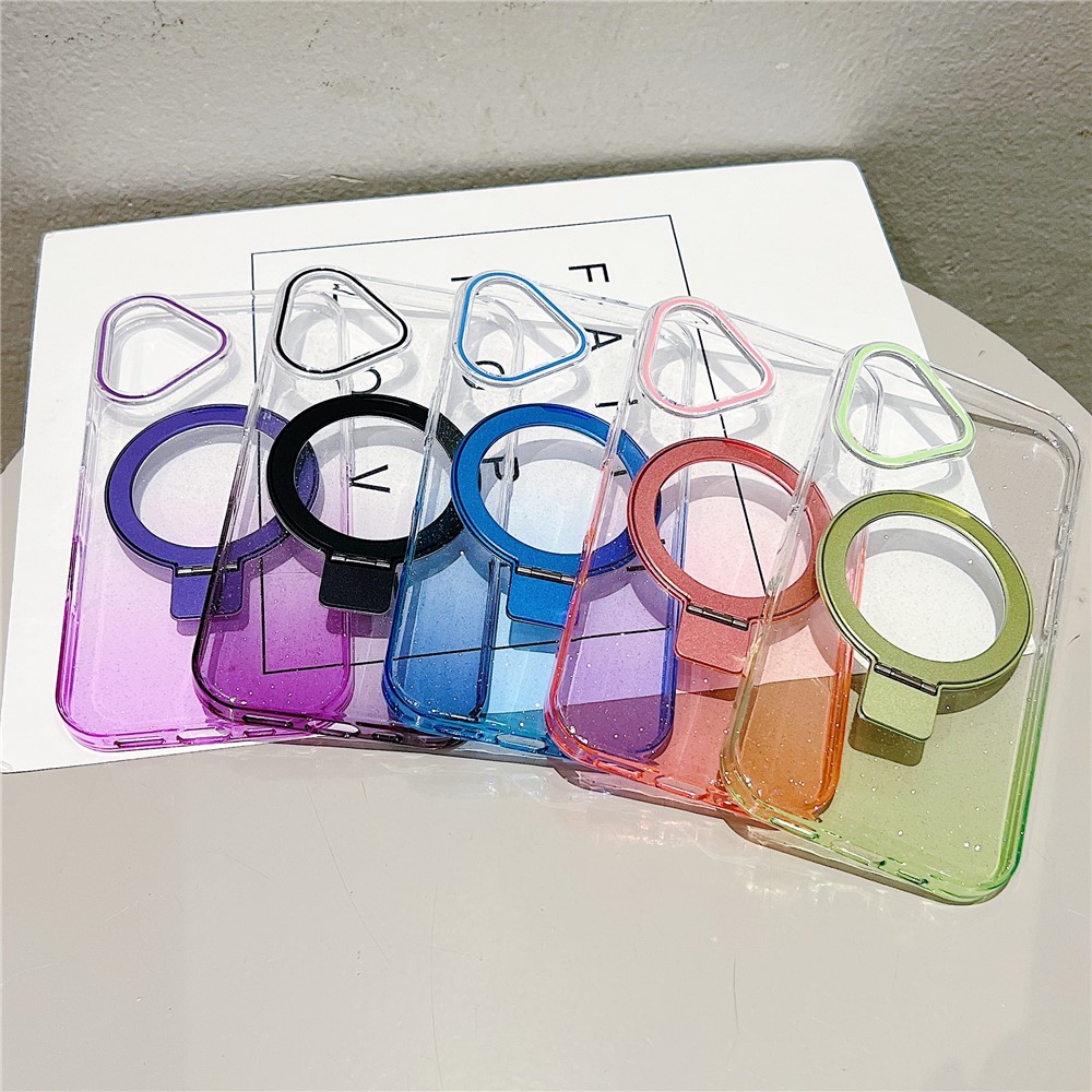 • For iPhone 17 Magnetic Case Kickstand Gradient Clear TPU Phone Back Cover - Purple