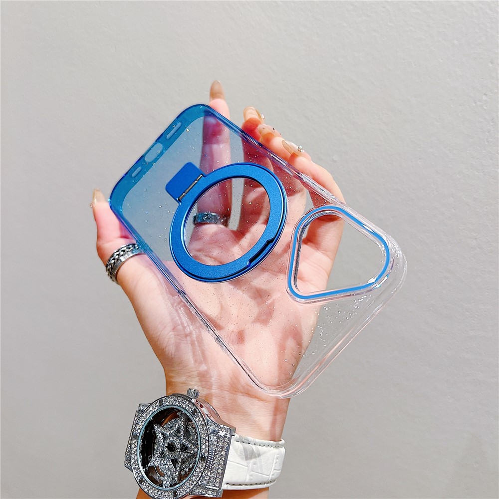 For iPhone 17 Magnetic Case Kickstand Gradient Clear TPU Phone Back Cover – Blue