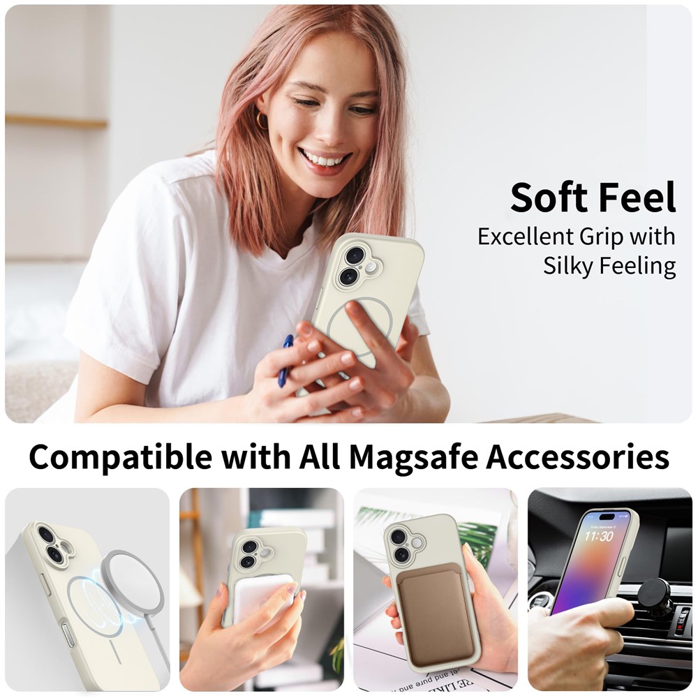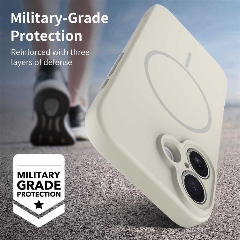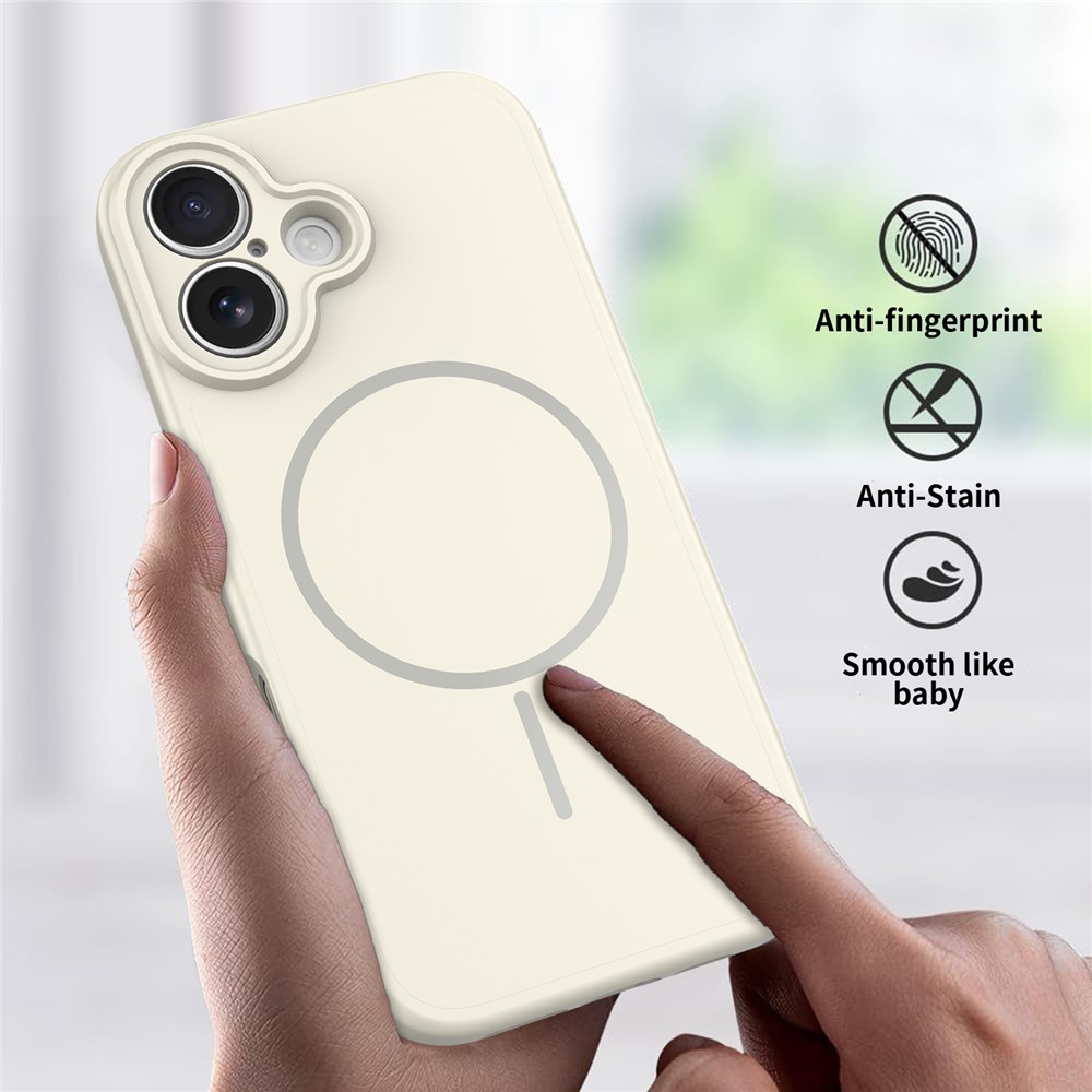 For iPhone 17 Magnetic Case PC + TPU Phone Cover with Tempered Glass Screen Film – Antique White