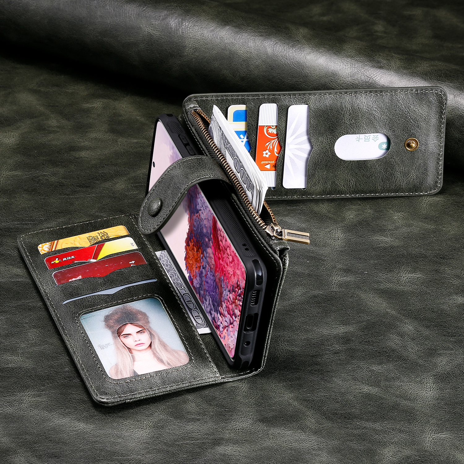 - Spacious Storage for Cards, Cash Equipped with multiple card slots, an inner cash pocket, and a secure zipper pocket, this multifunctional case provides ample storage space for credit cards, IDs, bills, and small essentials.