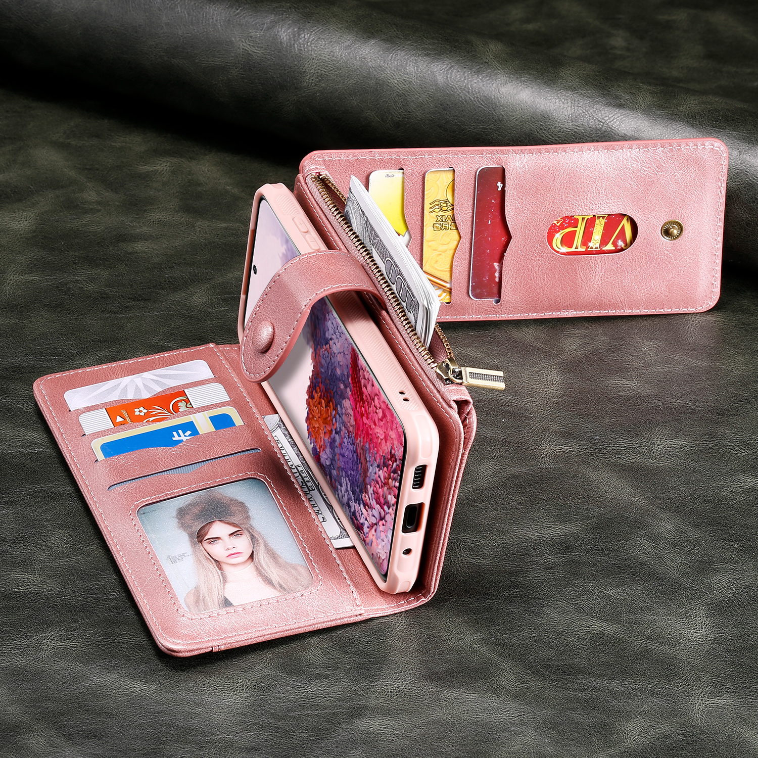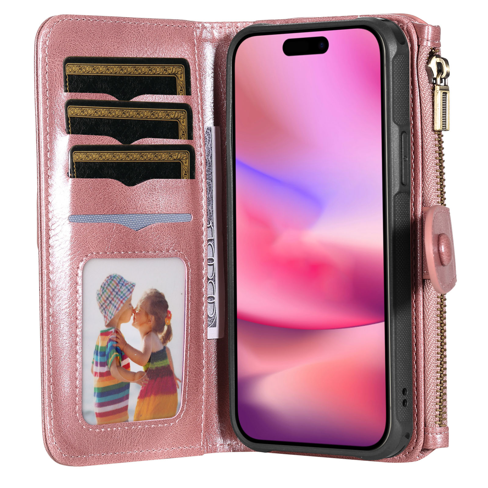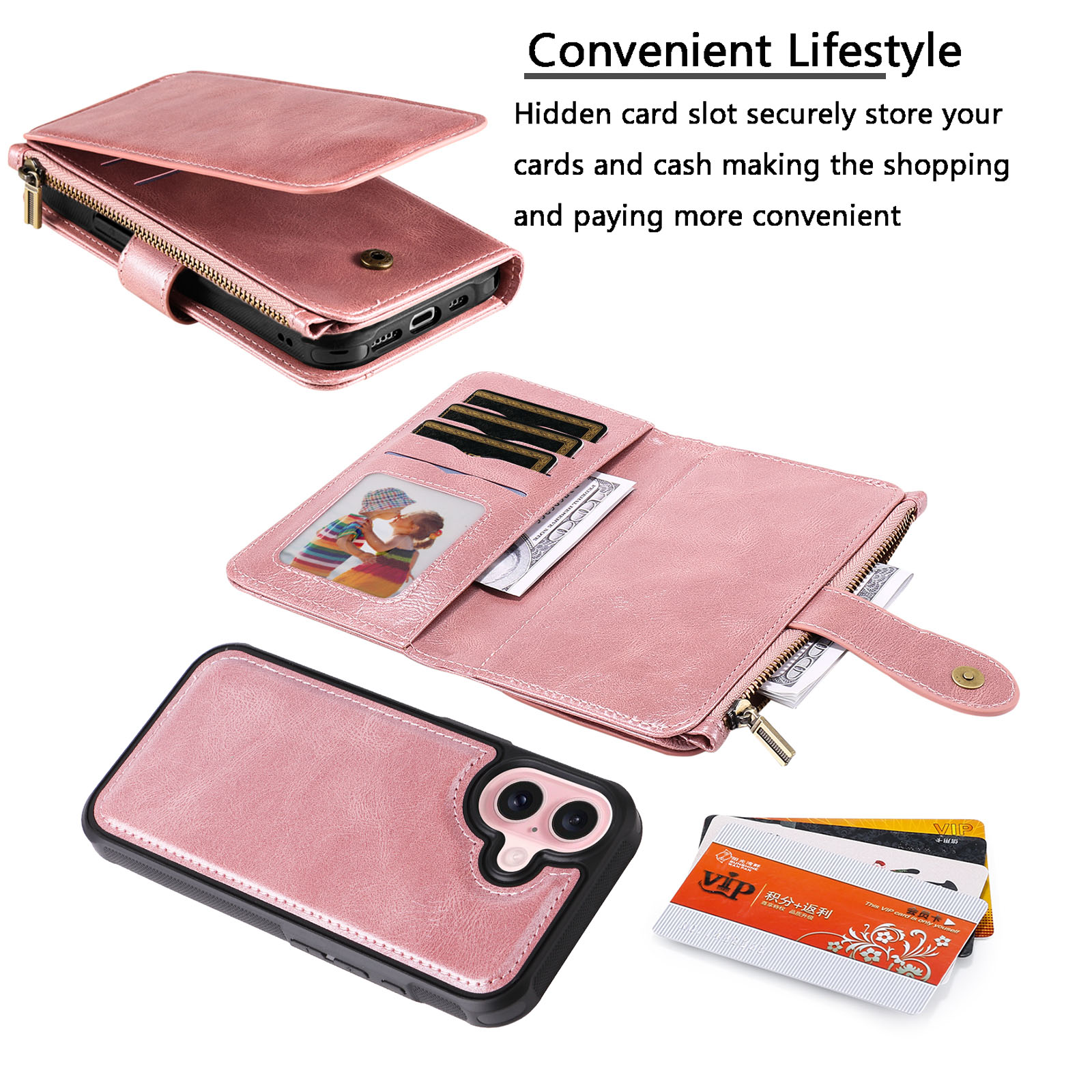 - Spacious Storage for Cards, Cash Equipped with multiple card slots, an inner cash pocket, and a secure zipper pocket, this multifunctional case provides ample storage space for credit cards, IDs, bills, and small essentials.