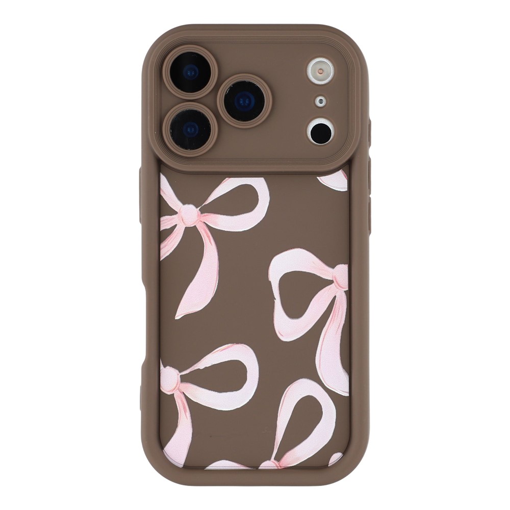 • For iPhone 17 Pro Case Aesthetic Pattern Print TPU Shockproof Phone Cover - Bow / Brown