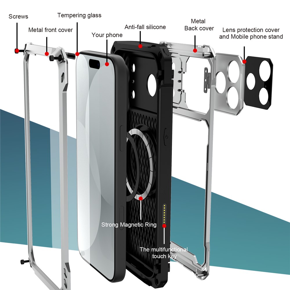 - Aluminum Alloy + Silicone This case is constructed with a combination of durable aluminum alloy and soft silicone, providing comprehensive protection for your device