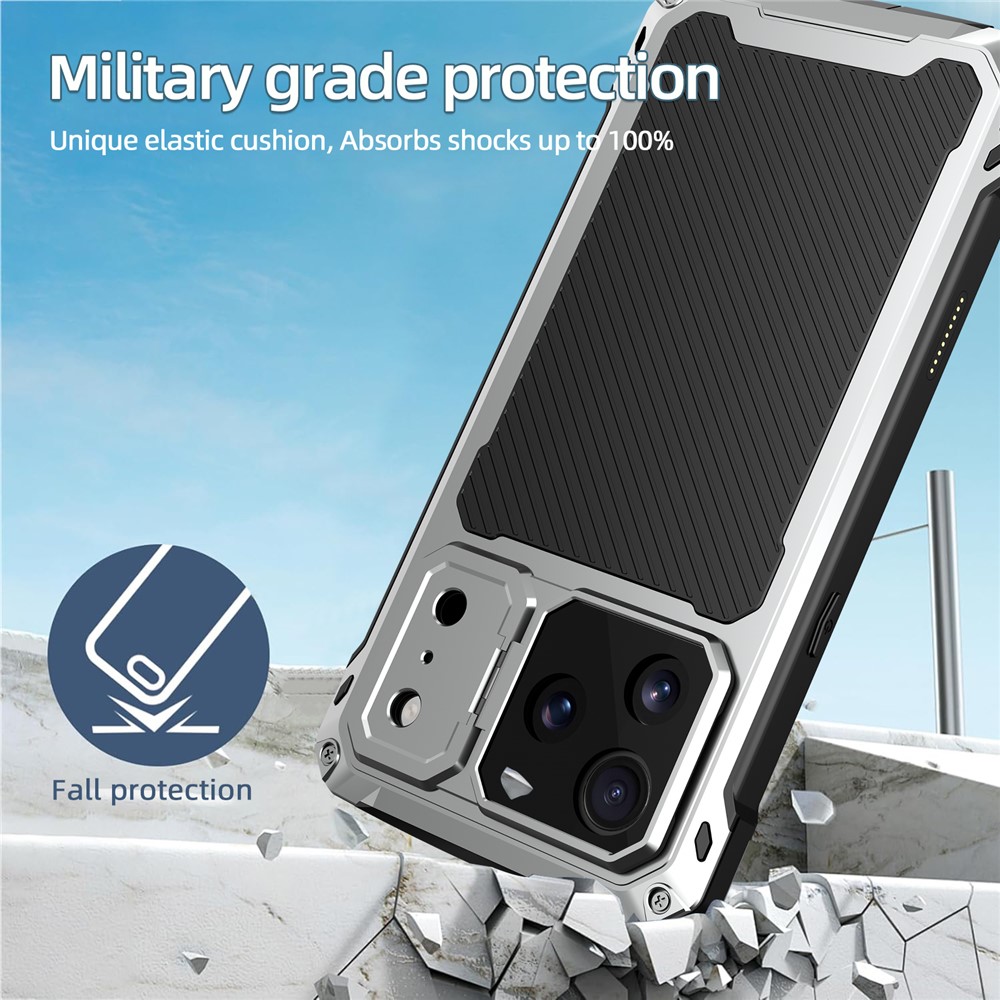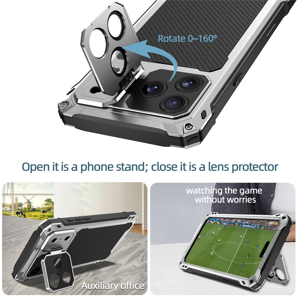 - Built-in Lens Kickstand The case features a metal lens kickstand that not only provides sturdy support for hands-free viewing but also acts as an additional layer of protection for your camera lens