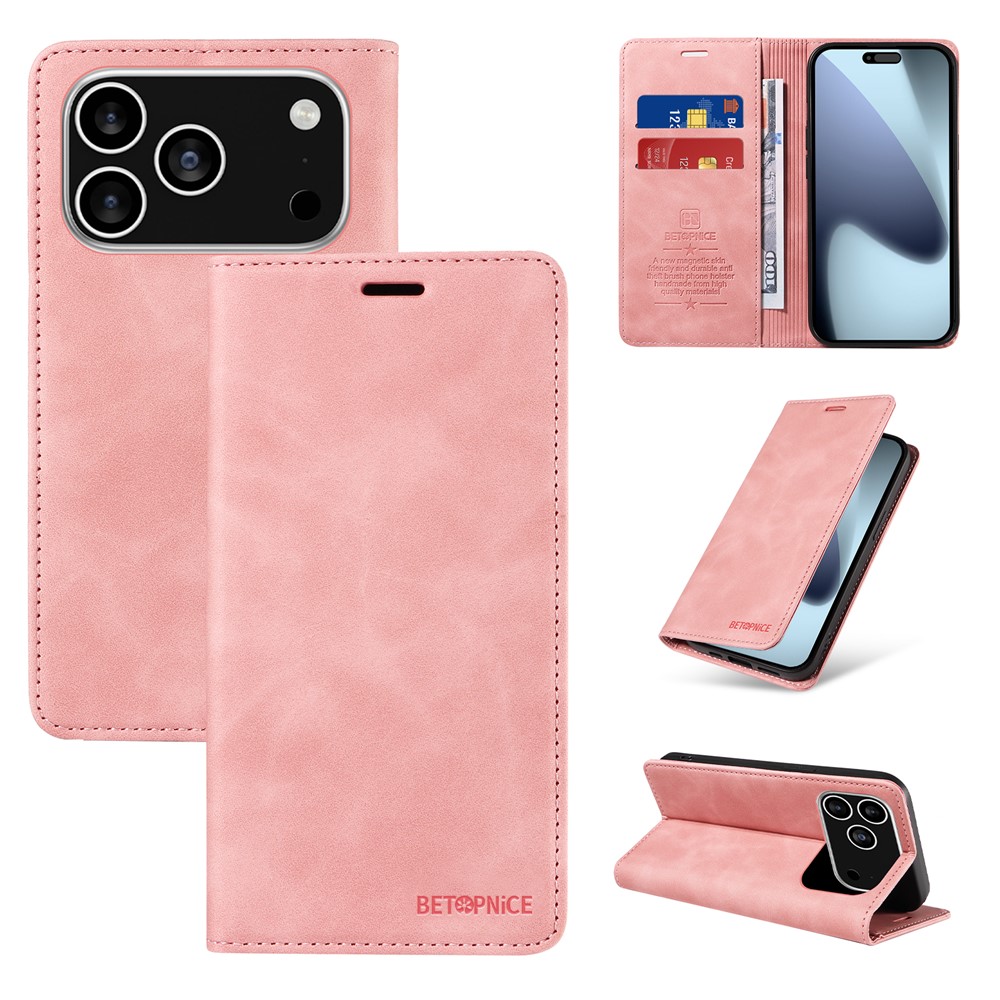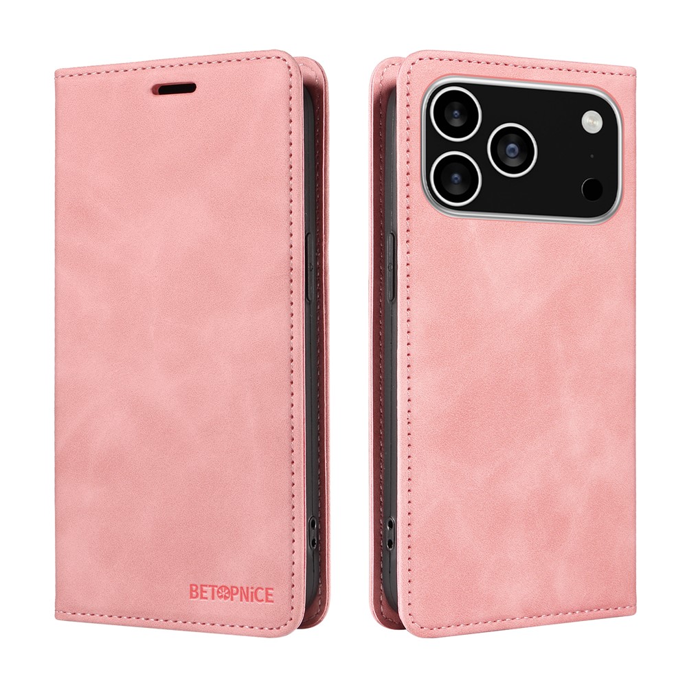 For iPhone 17 Pro Case BETOPNICE Magnetic Closure RFID Blocking Wallet Stand Leather Phone Cover – Pink