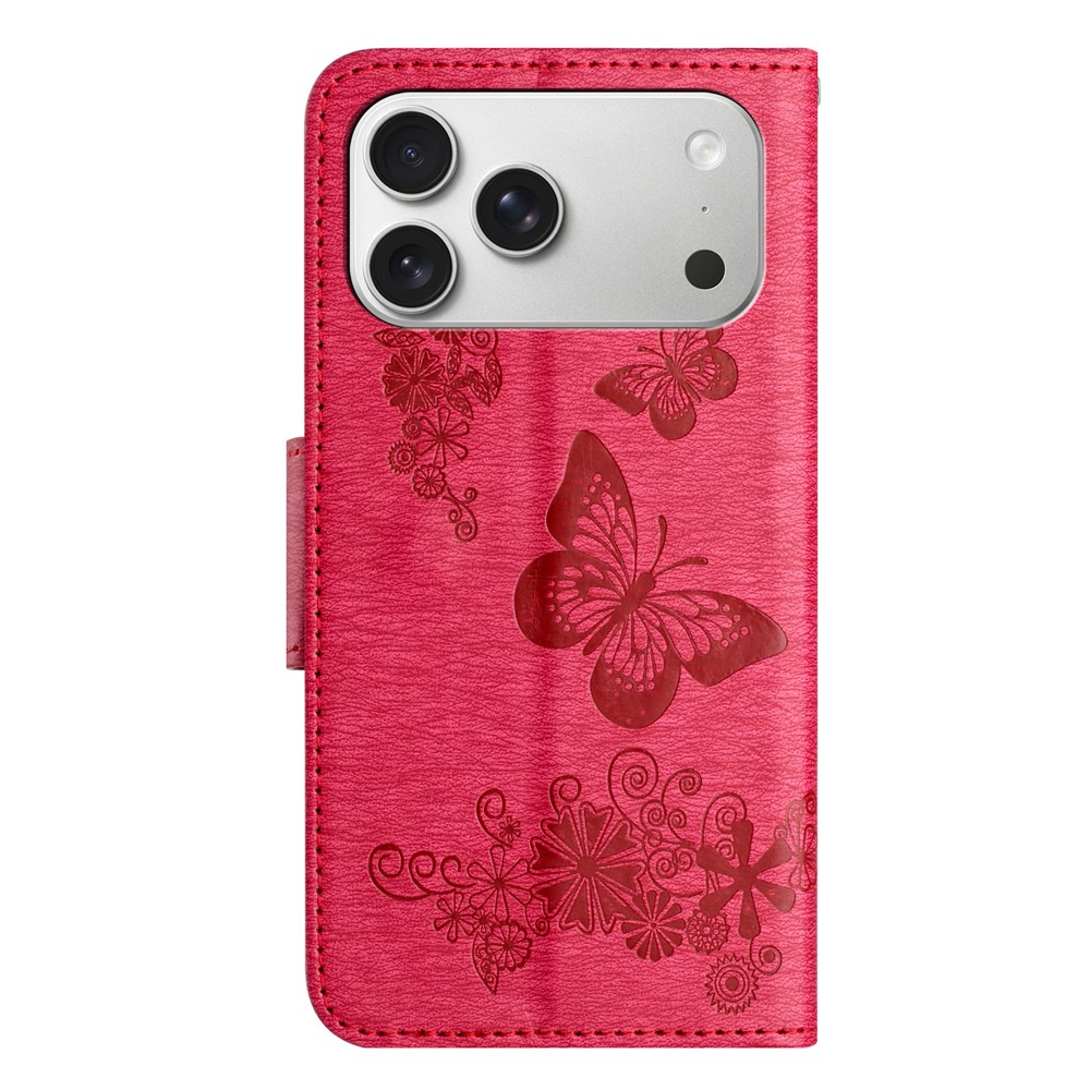 For iPhone 17 Pro Case Butterflies Flower Leather Wallet Flip Phone Cover - Red