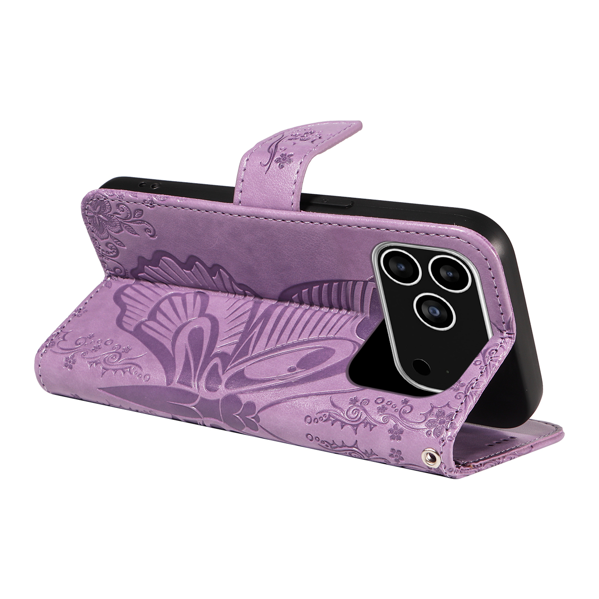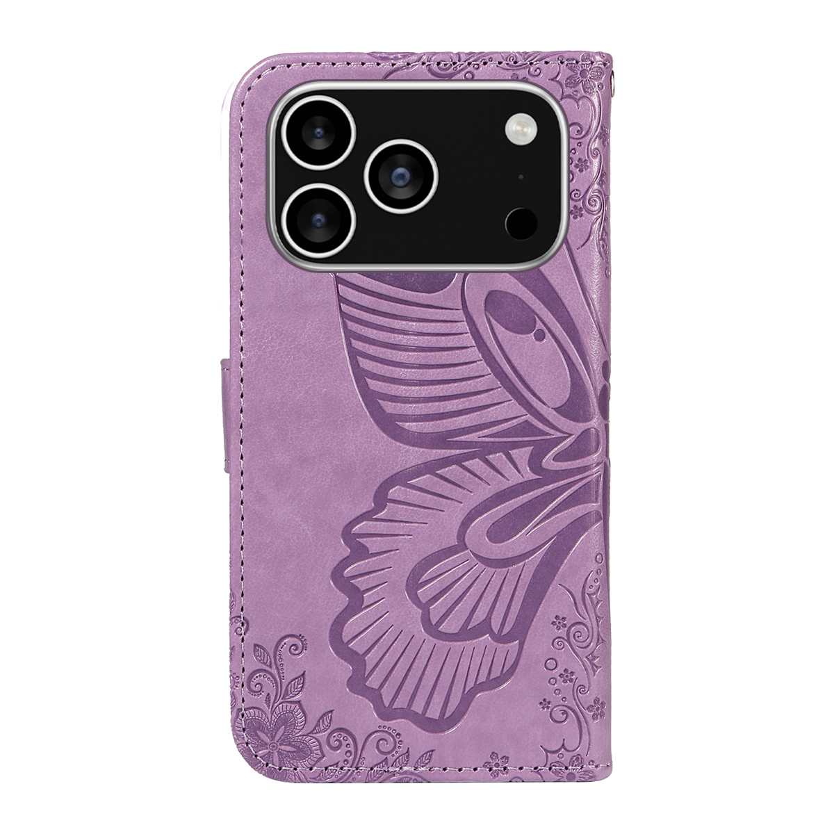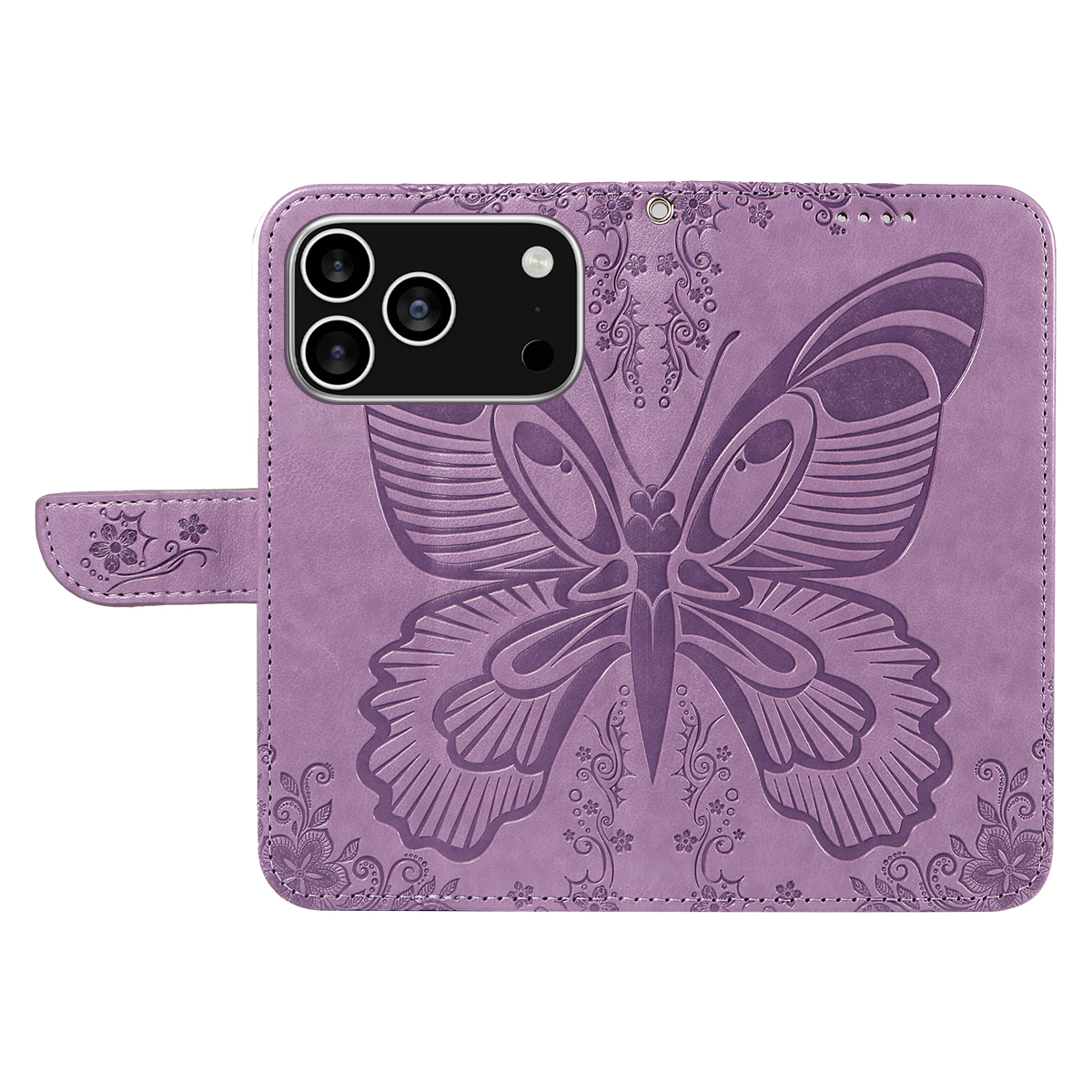 For iPhone 17 Pro Case Butterfly Pattern PU Leather Folio Flip Phone Cover – Light Purple