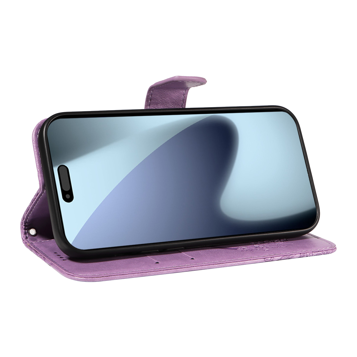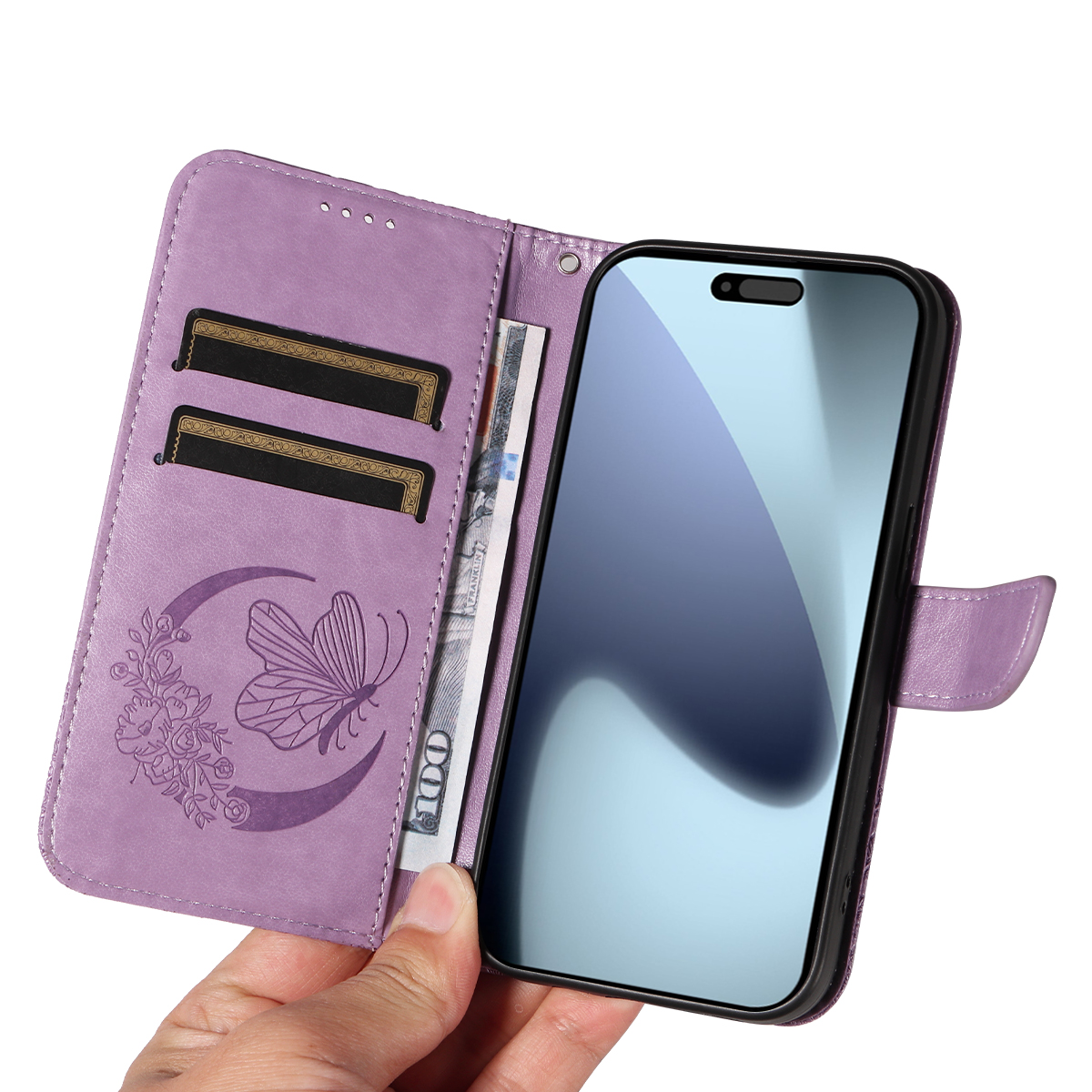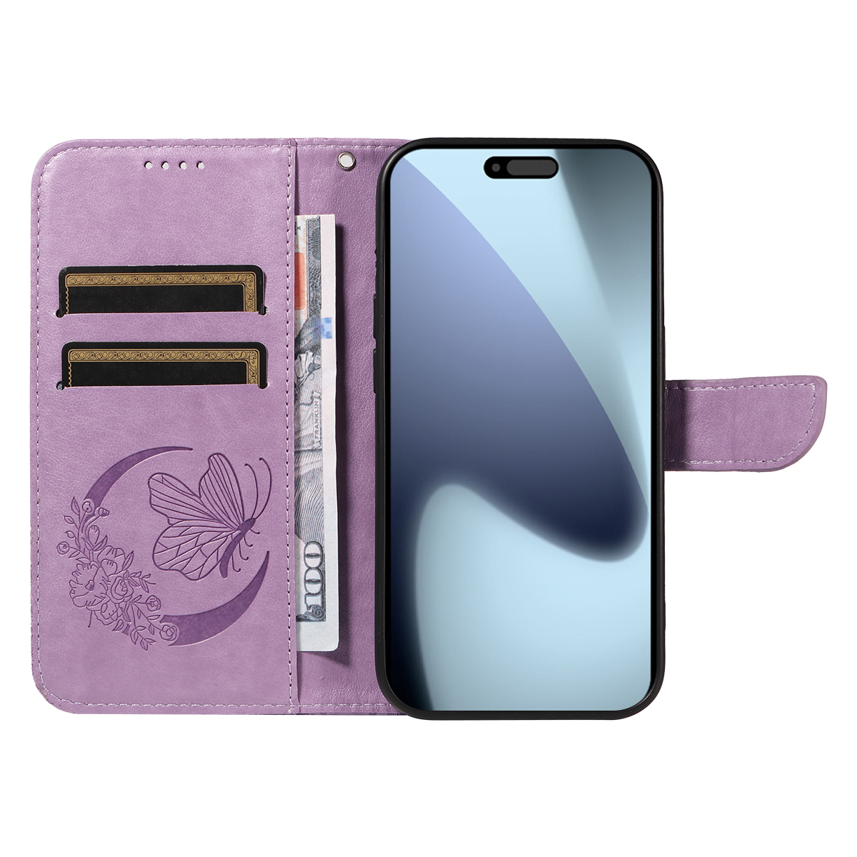 For iPhone 17 Pro Case Butterfly Pattern PU Leather Folio Flip Phone Cover – Light Purple