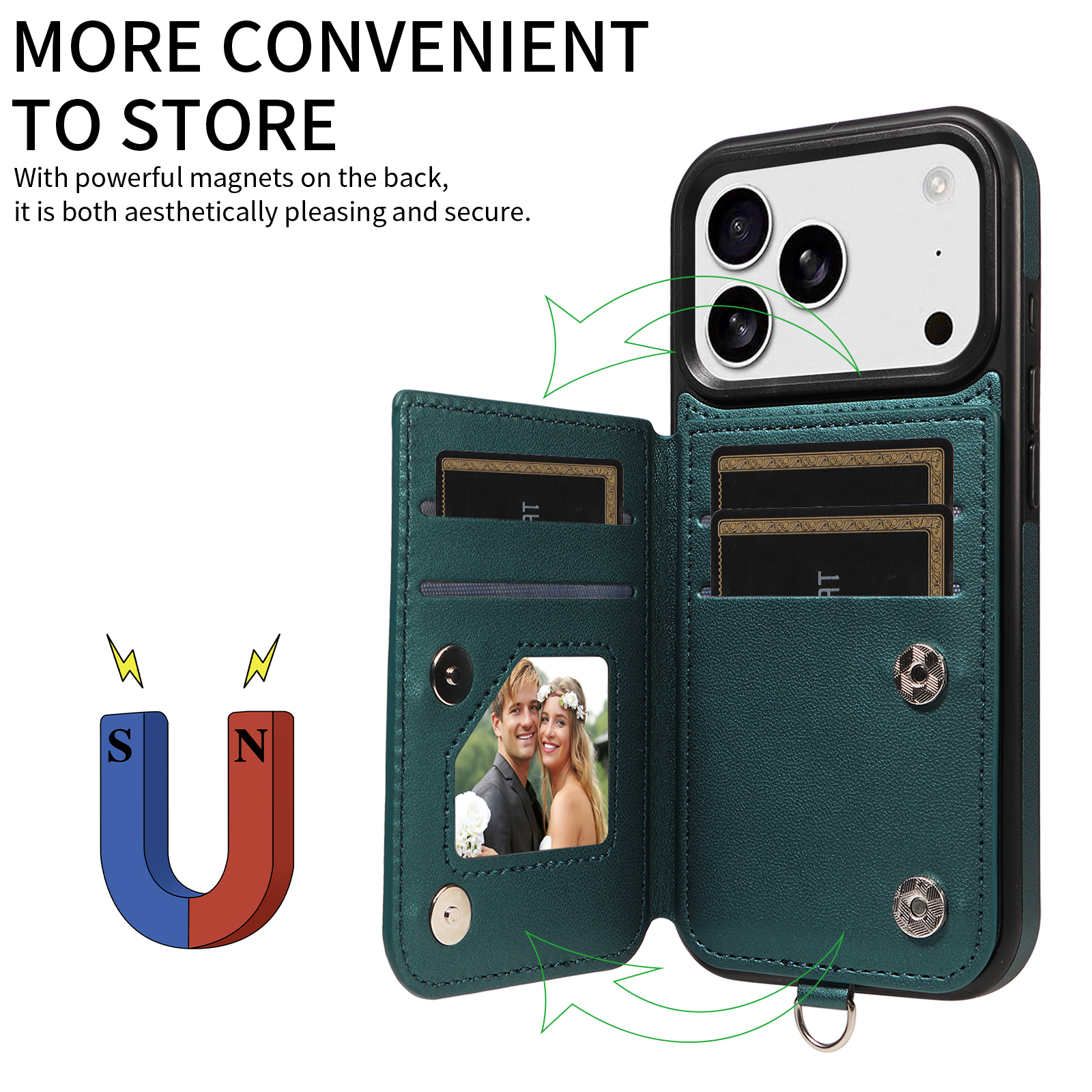 - Secure Magnetic Closure & Sturdy Ring Buckle Equipped with magnetic buttons for reliable closure and a robust ring buckle, the case ensures your phone and cards stay safe while providing a firmer, more comfortable grip.
