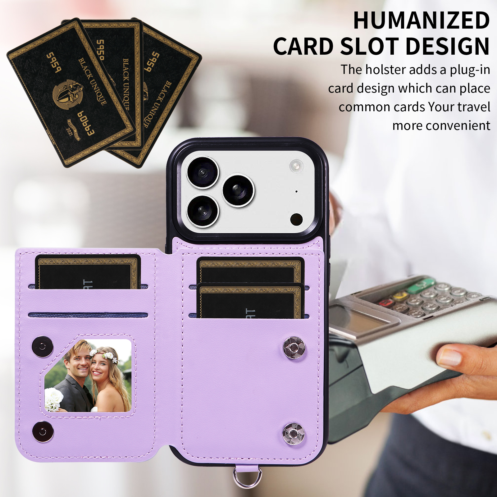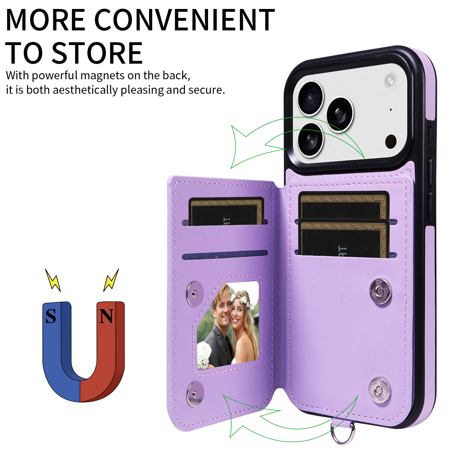 - Secure Magnetic Closure & Sturdy Ring Buckle Equipped with magnetic buttons for reliable closure and a robust ring buckle, the case ensures your phone and cards stay safe while providing a firmer, more comfortable grip.