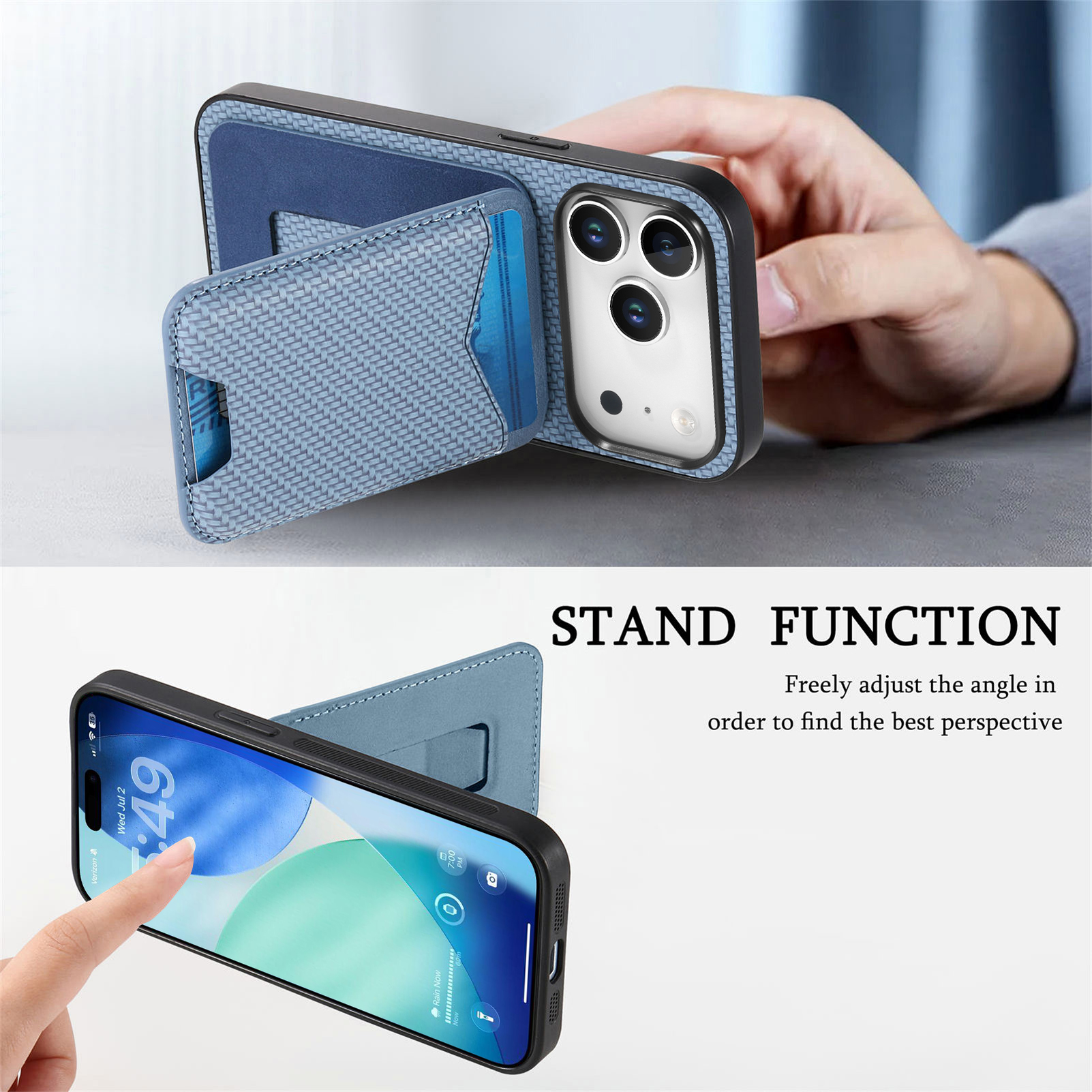 - Flexible Viewing Kickstand The card holder can be a kickstand that allows vertical and horizontal viewing angles, making it perfect for watching videos or browsing the internet hands-free