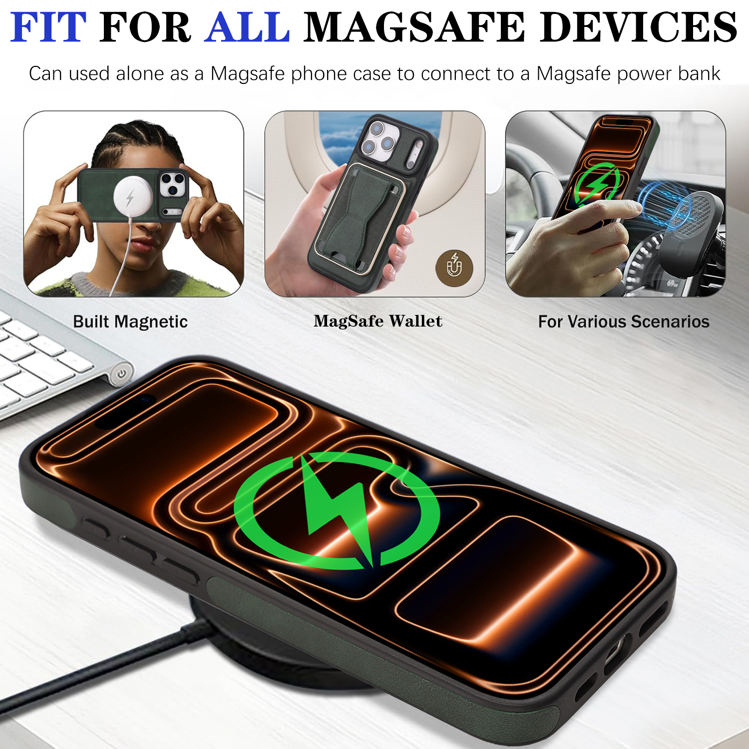 - Compatible with MagSafe Supports magnetic accessories and wireless charging with strong N52 neodymium magnets in both case and card holder.