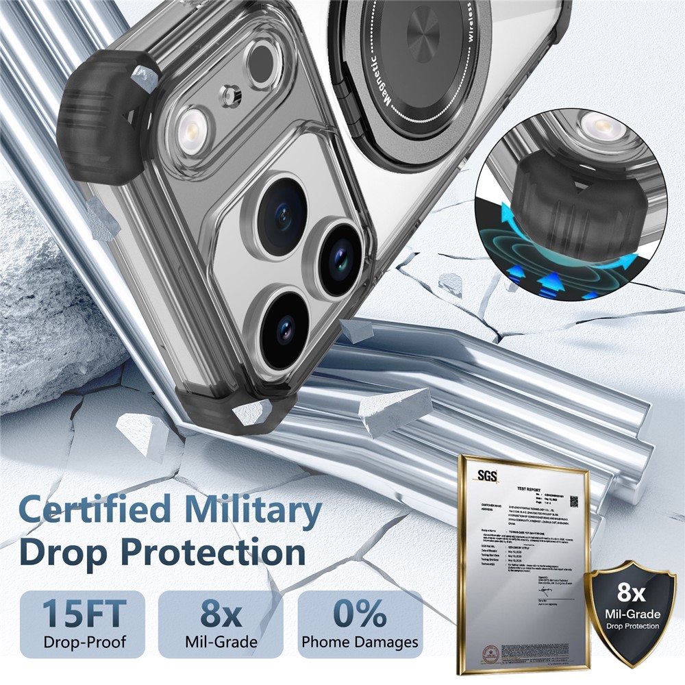 - Certified Military Drop Protection This phone case offers certified military-grade drop protection, capable of withstanding drops from heights up to 15 feet. The reinforced corners provide superior protection against impacts