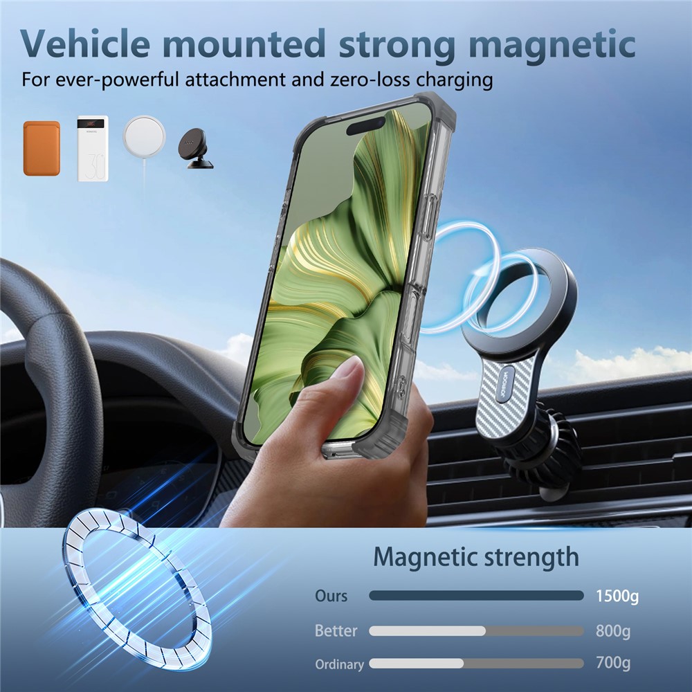 - Magnetic Charging Compatibility The case includes a strong magnetic ring, is compatible with MagSafe chargers and allows it to attach to magnetic car mounts and other magnetic surfaces securely