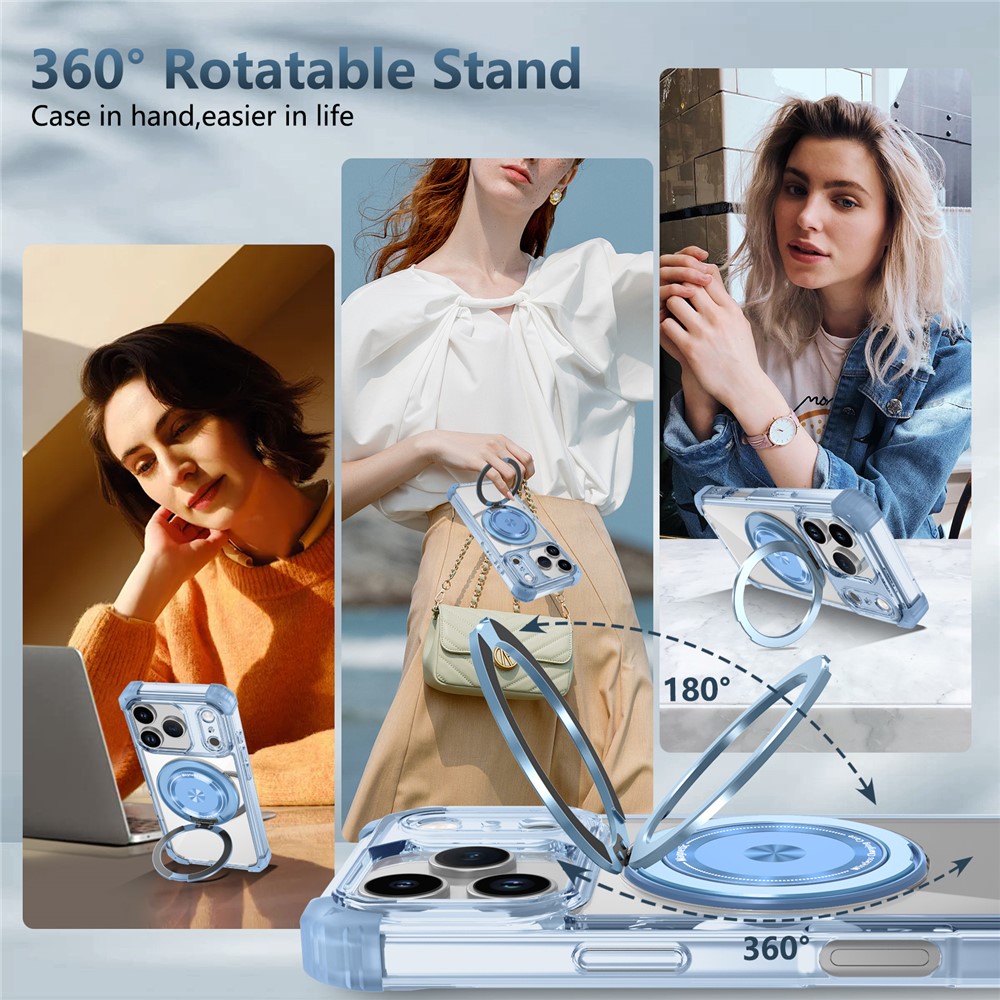 - 360-Degree Rotatable Kickstand Equipped with a 360-degree rotatable ring kickstand, it allows for convenient hands-free viewing in multiple angles, perfect for reading, watching videos, or video calls
