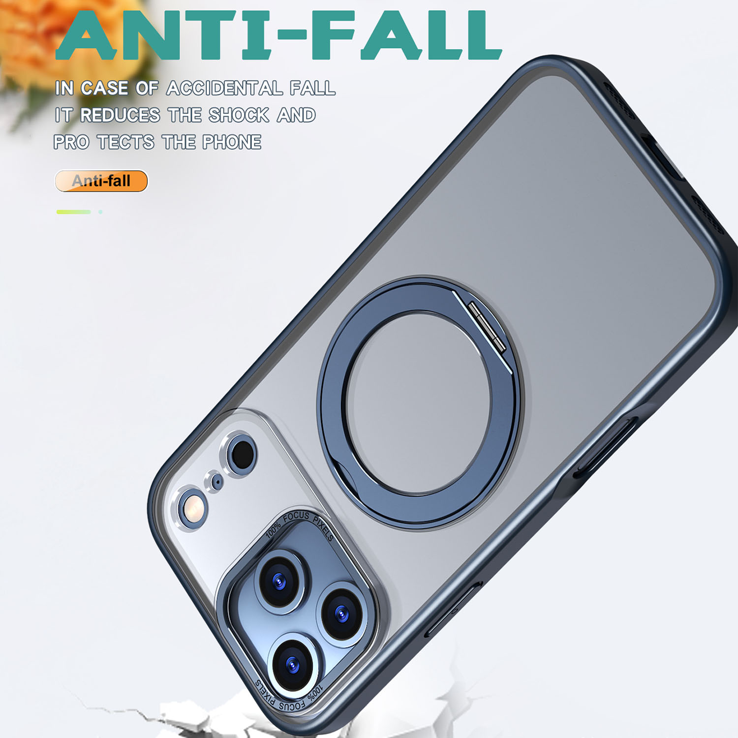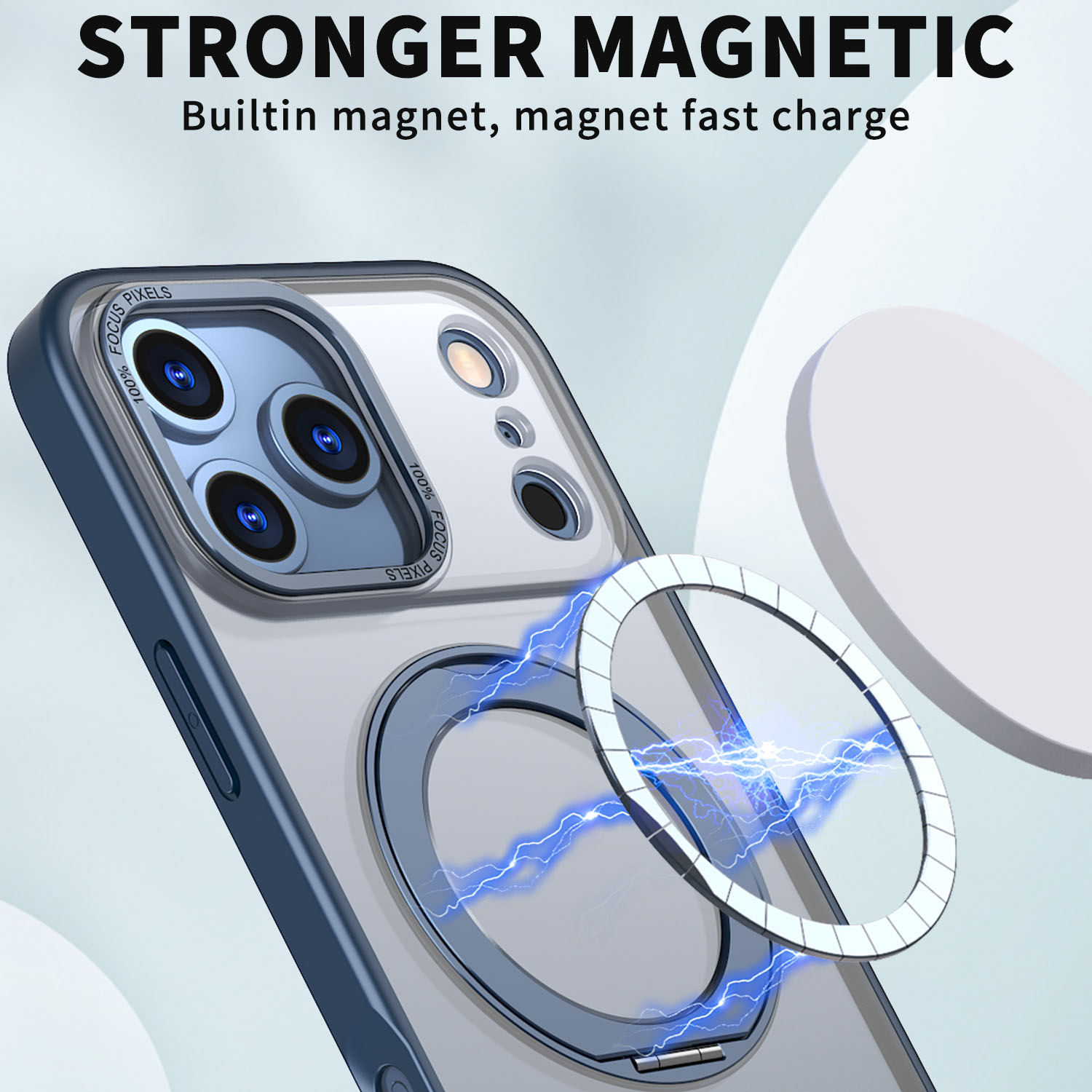 For iPhone 17 Pro Case Compatible with MagSafe Skin-touch TPU + PC Phone Cover with Rotating Kickstand – Blue