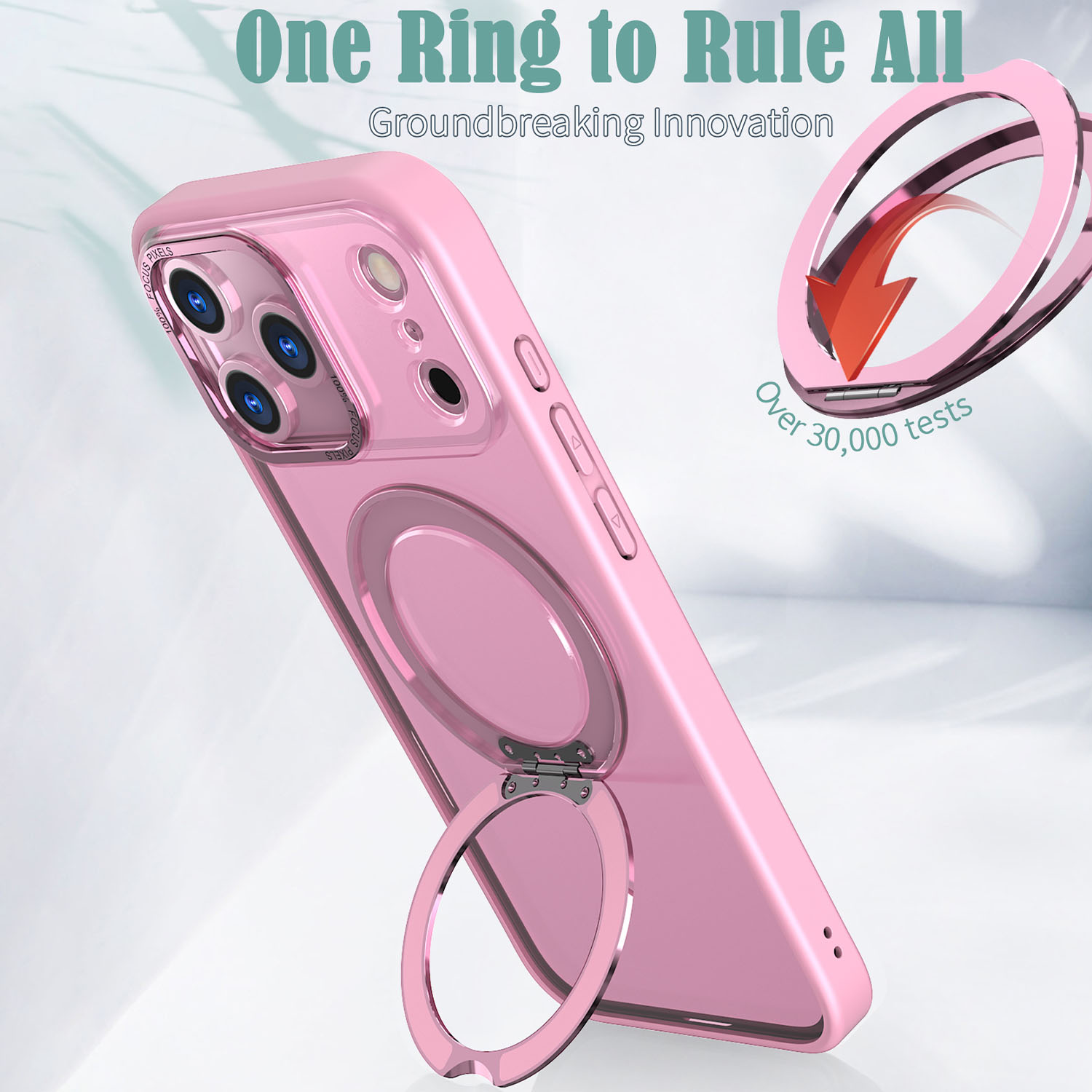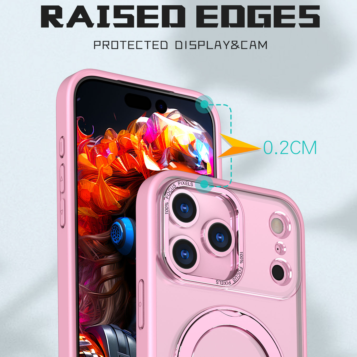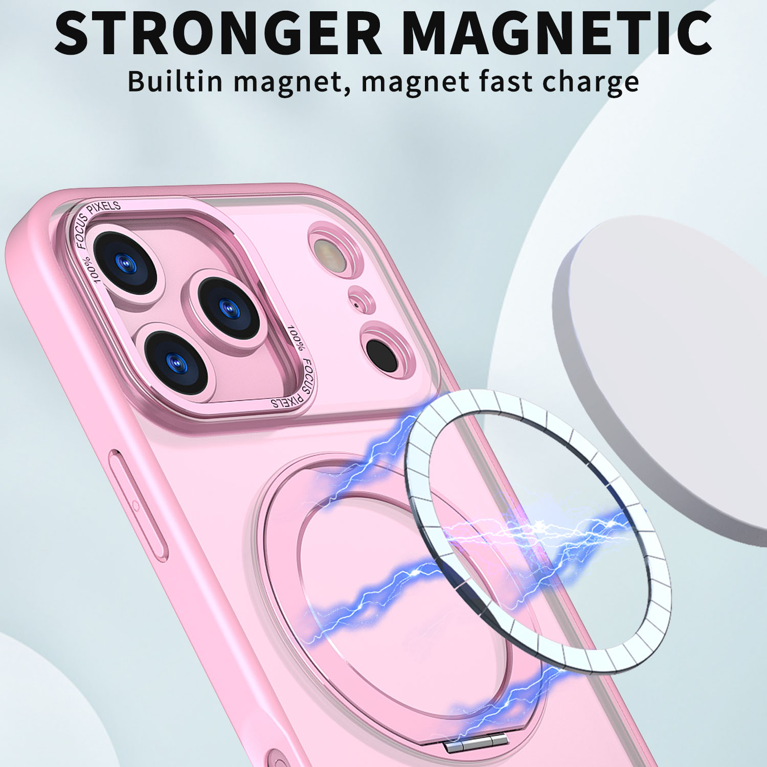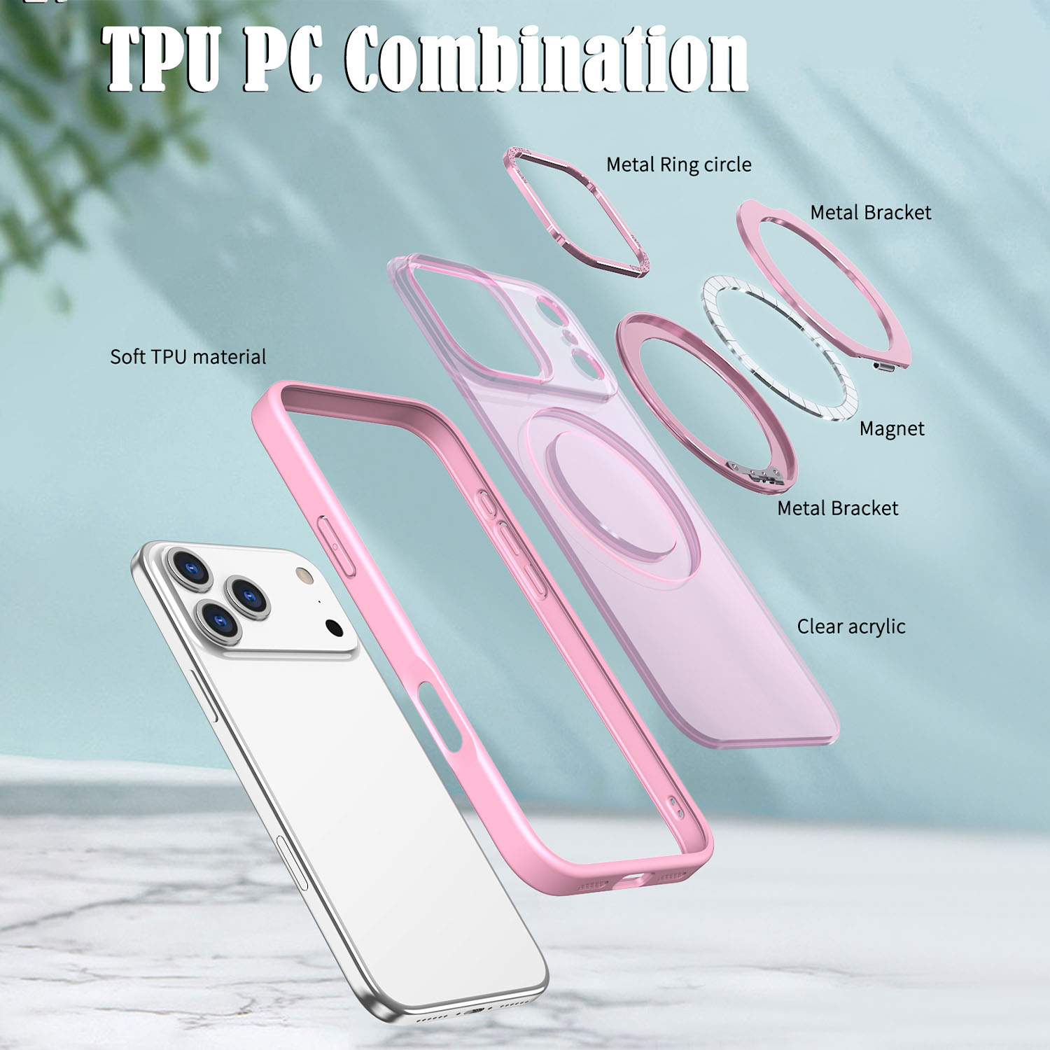 For iPhone 17 Pro Case Compatible with MagSafe Skin-touch TPU + PC Phone Cover with Rotating Kickstand – Pink