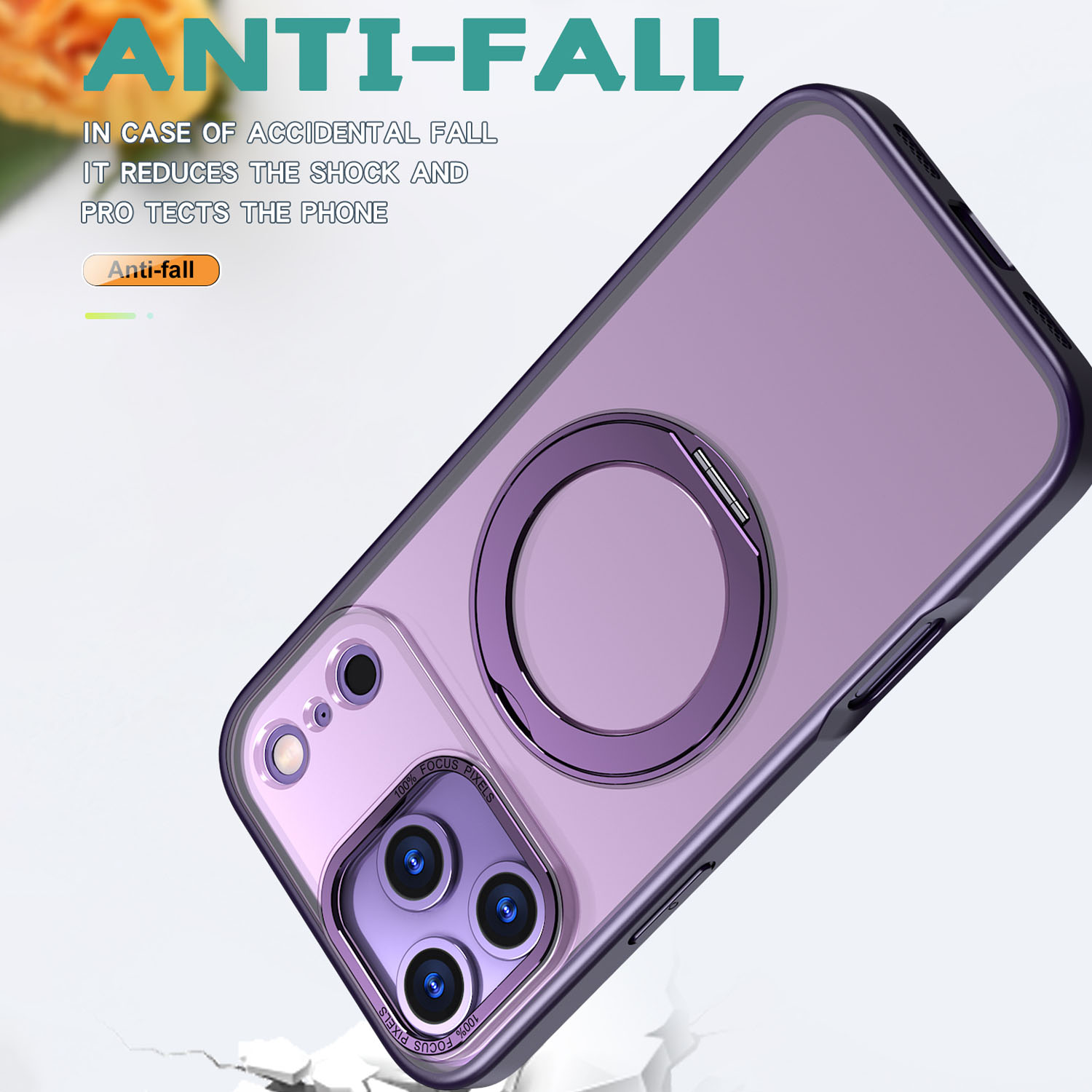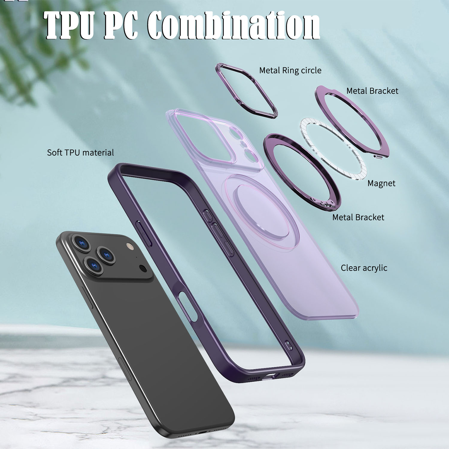 For iPhone 17 Pro Case Compatible with MagSafe Skin-touch TPU + PC Phone Cover with Rotating Kickstand – Purple