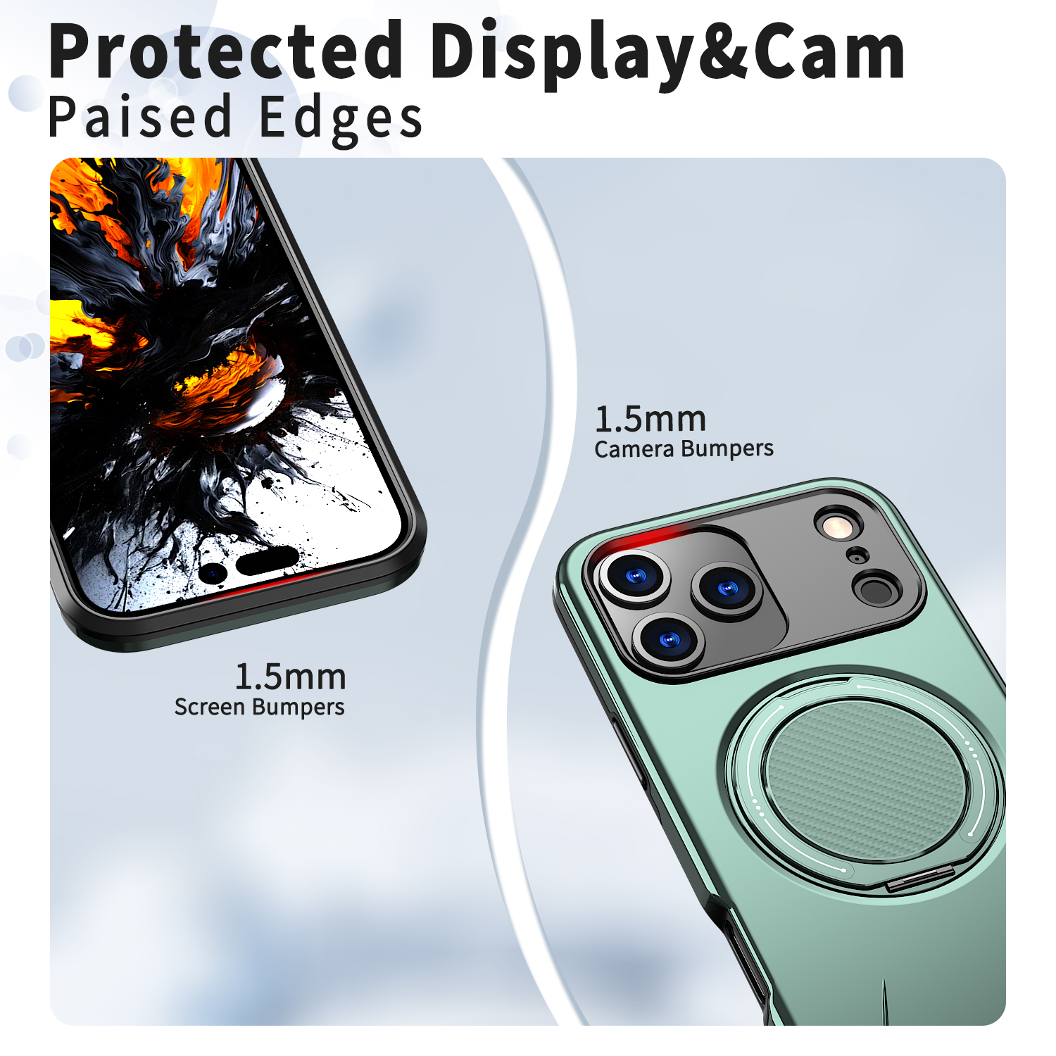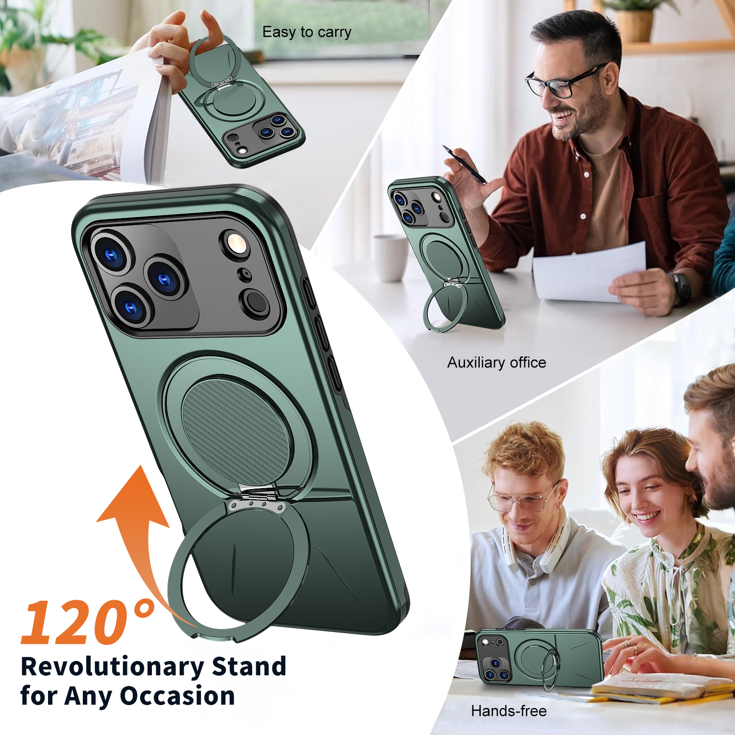 For iPhone 17 Pro Case Compatible with MagSafe TPU + PC Back Cover with Rotating Kickstand – Green