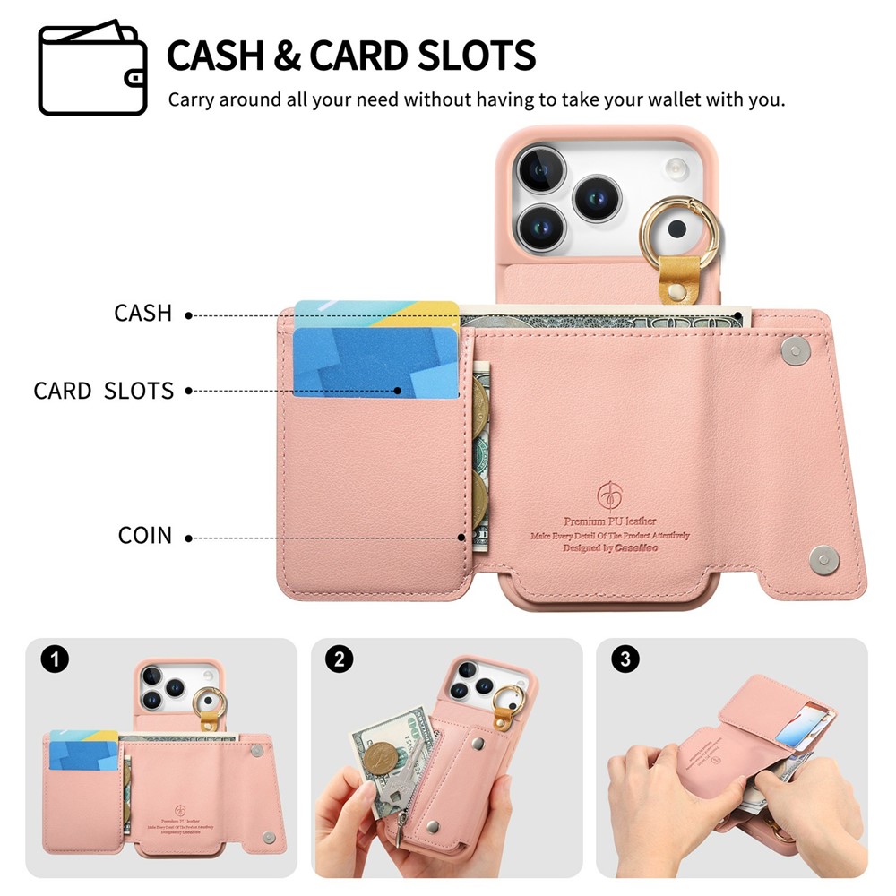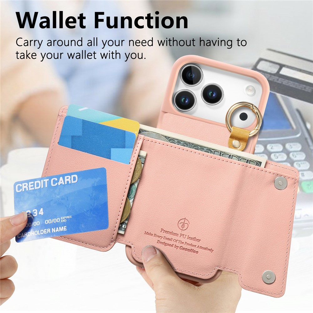 - All in One Wallet Storage Designed with card slots for cash, cards, and coins, this case keeps your essentials neatly organized, eliminating the need for a bulky wallet when going out.