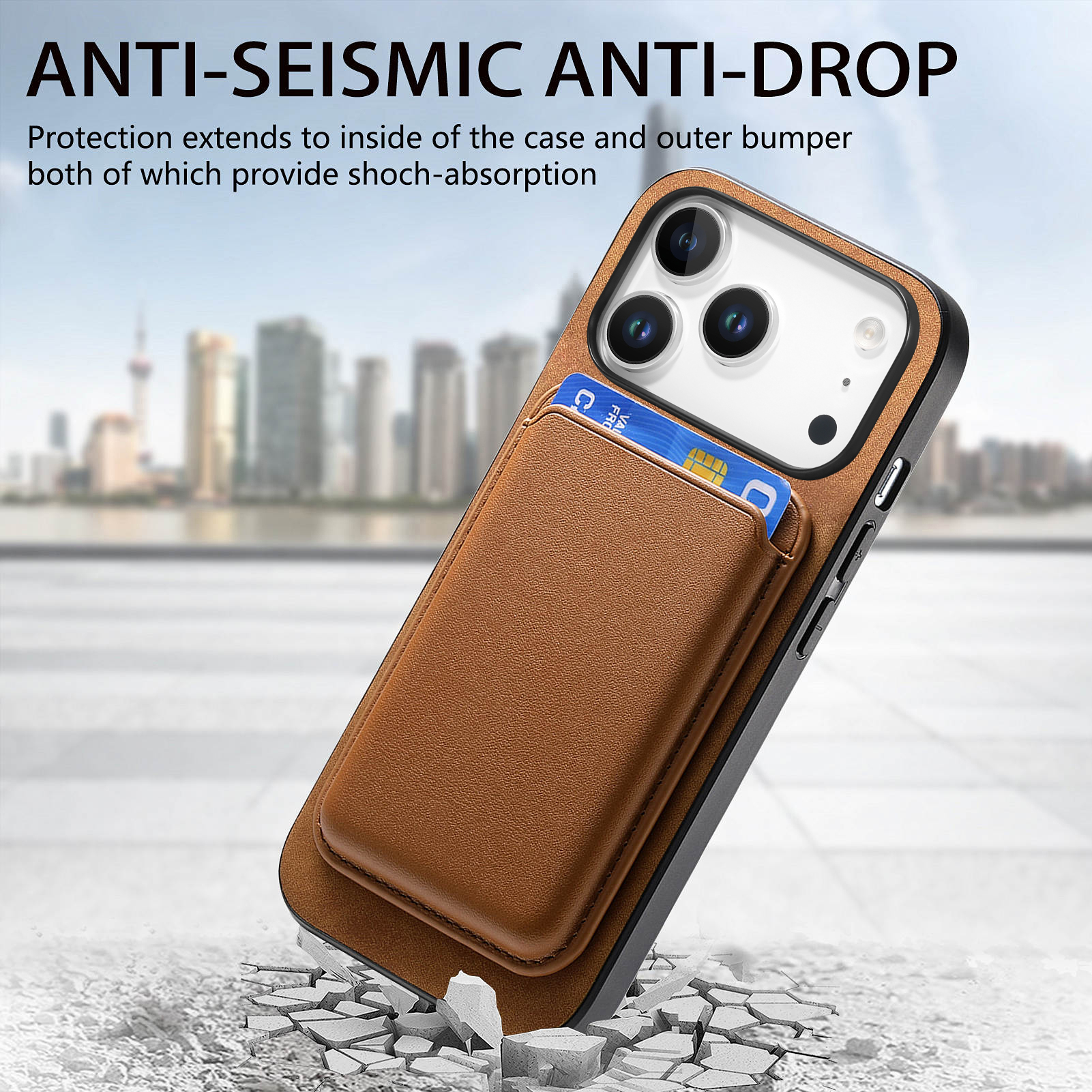 - Anti-Drop Protection The case offers anti-drop protection with an inside layer and outer bumper, both providing shock absorption to safeguard your phone