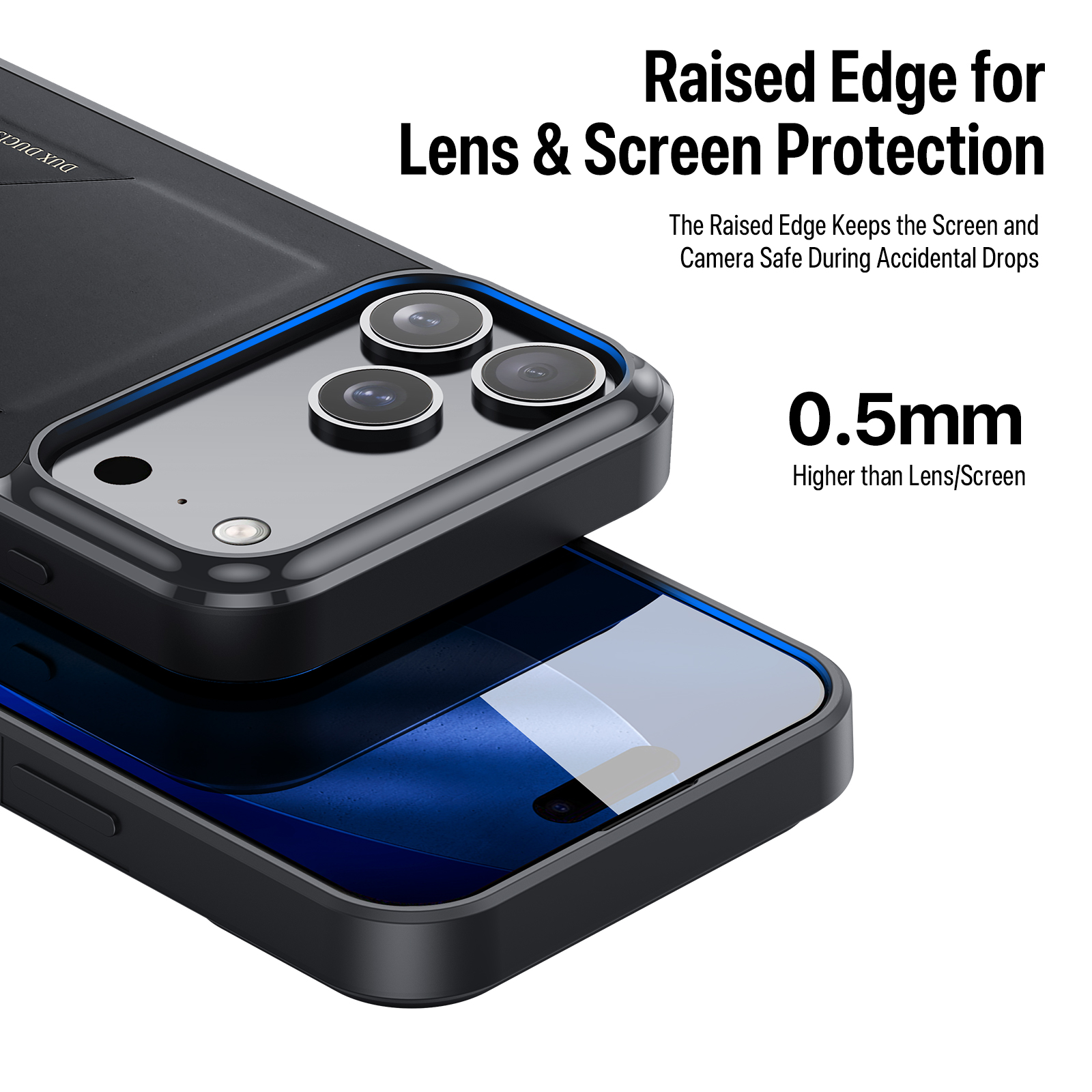For iPhone 17 Pro Case DUX DUCIS Pocard Series Card Holder Leather + PC + TPU Phone Cover – Black
