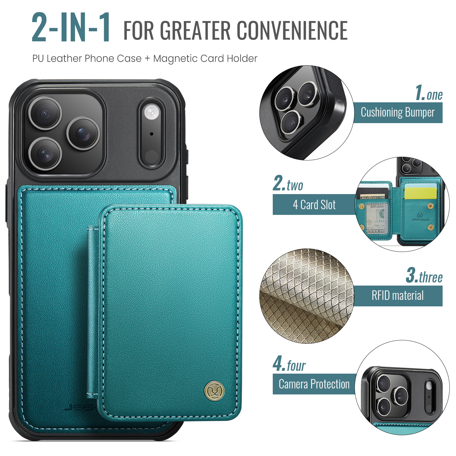 - 2-in-1 Detachable Design The card bag and phone case can be separated and magnetically attached, providing versatile use and convenient functionality