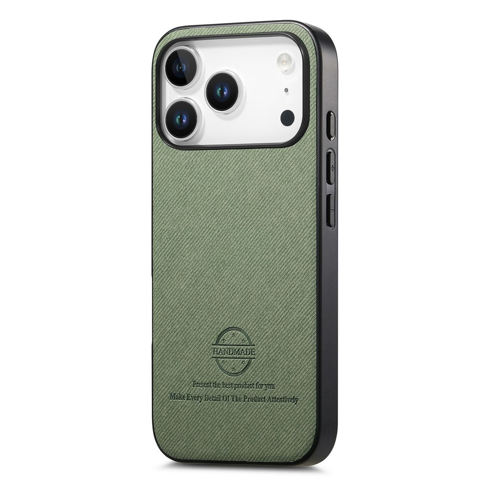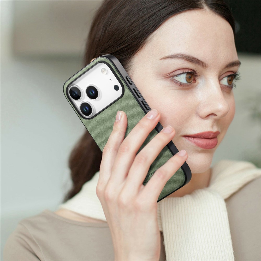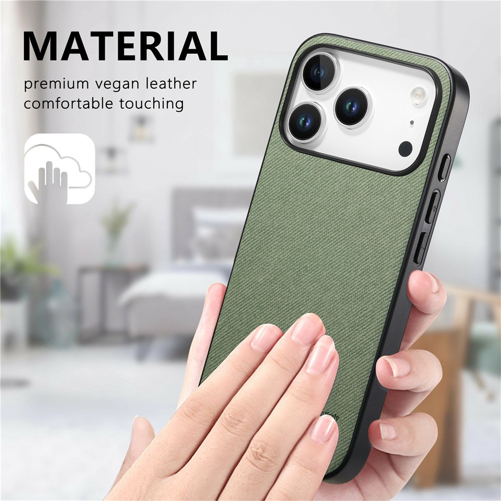 For iPhone 17 Pro Case Leather Phone Back Cover with Cloth Texture – Green