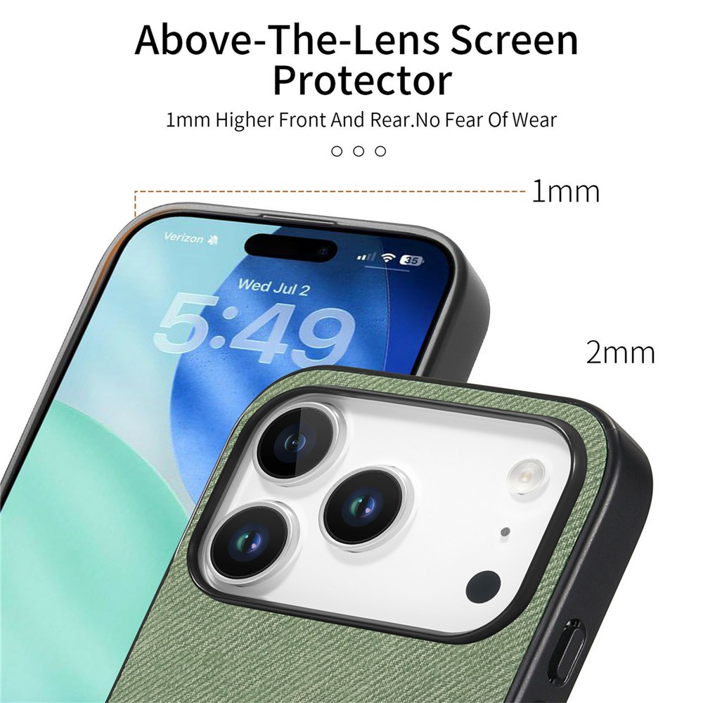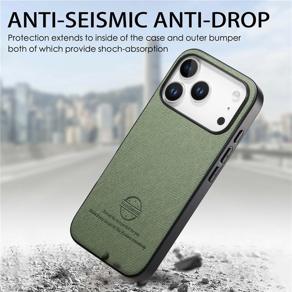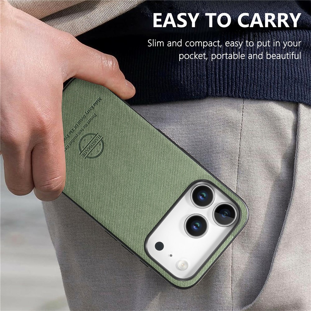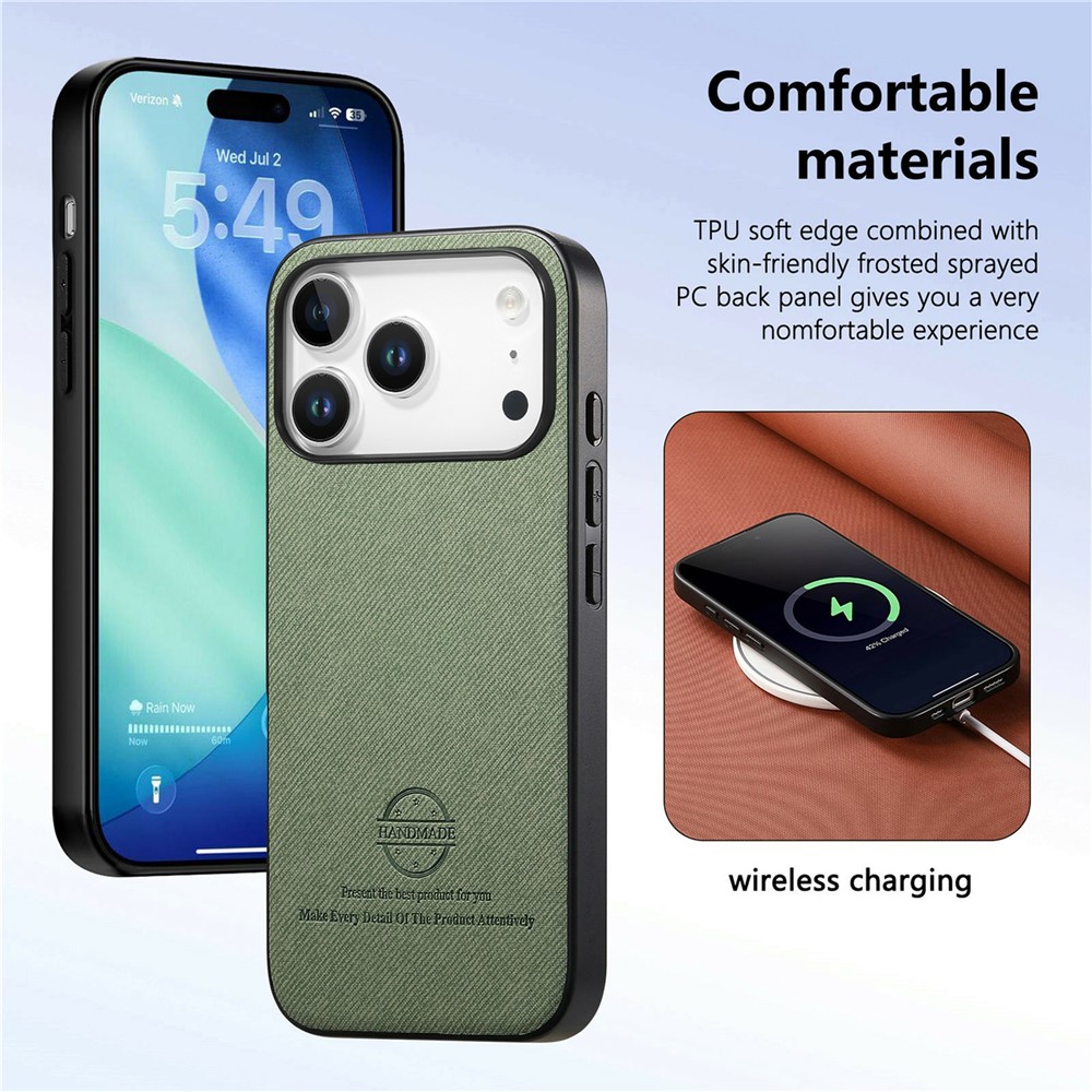 For iPhone 17 Pro Case Leather Phone Back Cover with Cloth Texture – Green
