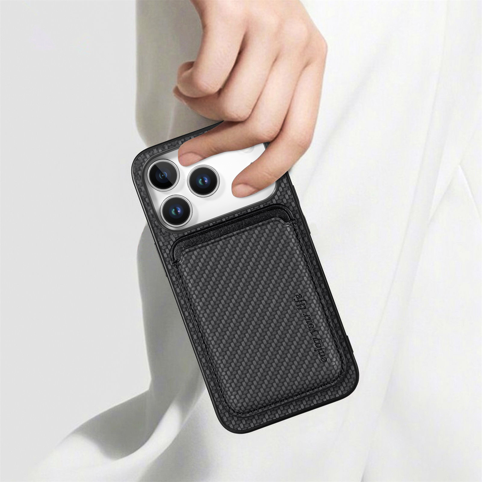 - Premium Material Composition Constructed from a combination of PC, TPU, and PU leather, this case features a carbon fiber texture that offers a comfortable and secure grip, blending durability with style