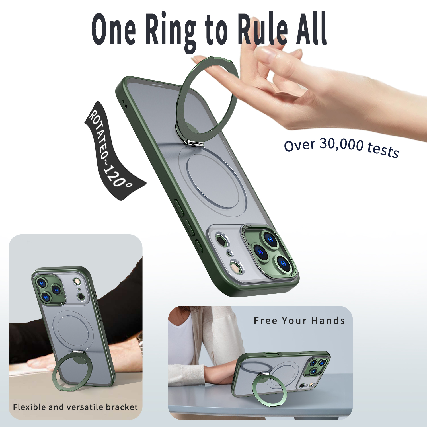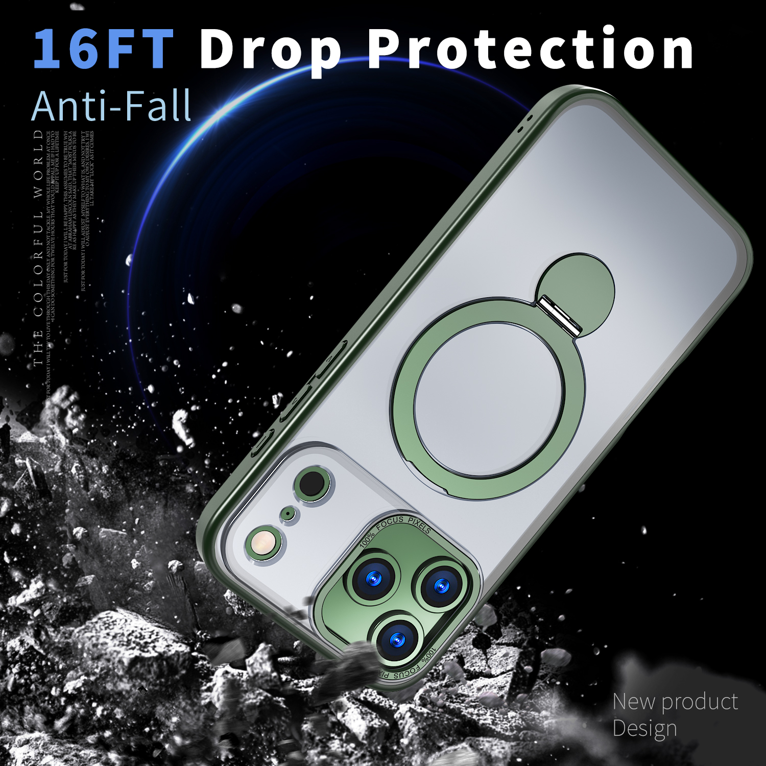 For iPhone 17 Pro Case Rotating Kickstand Skin-touch TPU + PC Phone Cover Compatible with MagSafe – Green