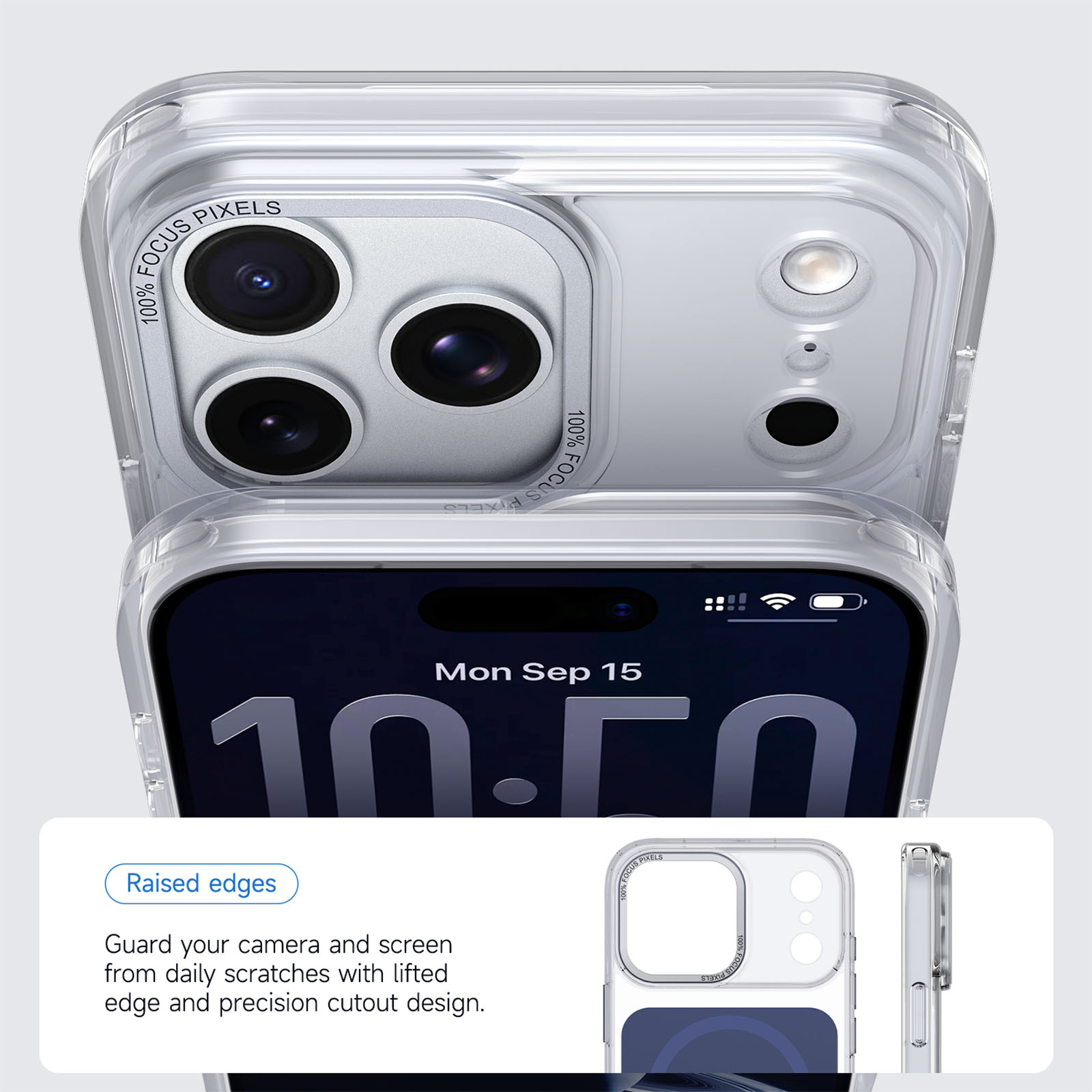 - Enhanced Camera Protection Features a 0.5mm raised bezel around the camera and a metal frame for impact resistance without compromising photo quality.