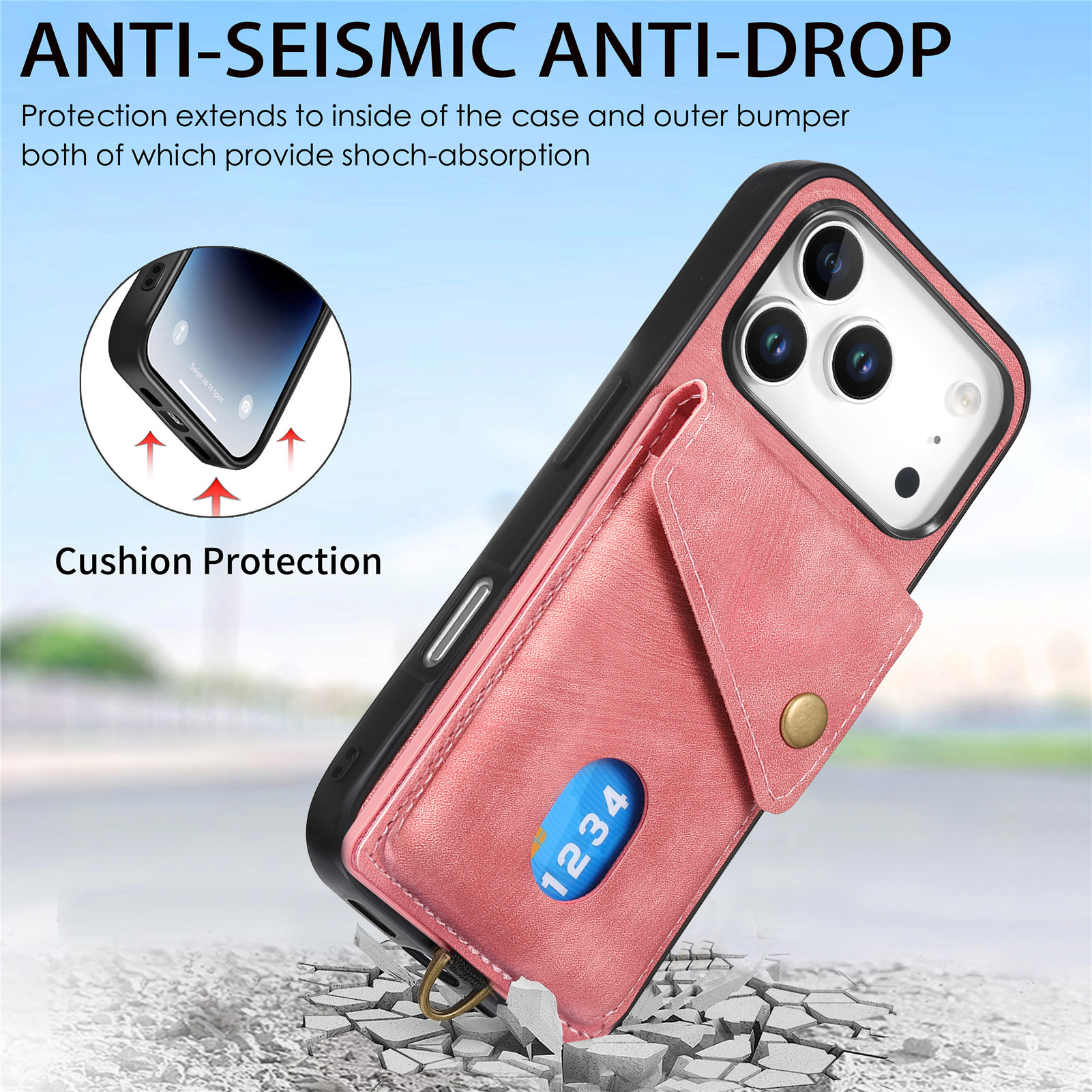 - Integrated Card Holder Includes a secure card holder on the back that can hold multiple cards and cash, providing convenience for carrying your essentials without needing a separate wallet