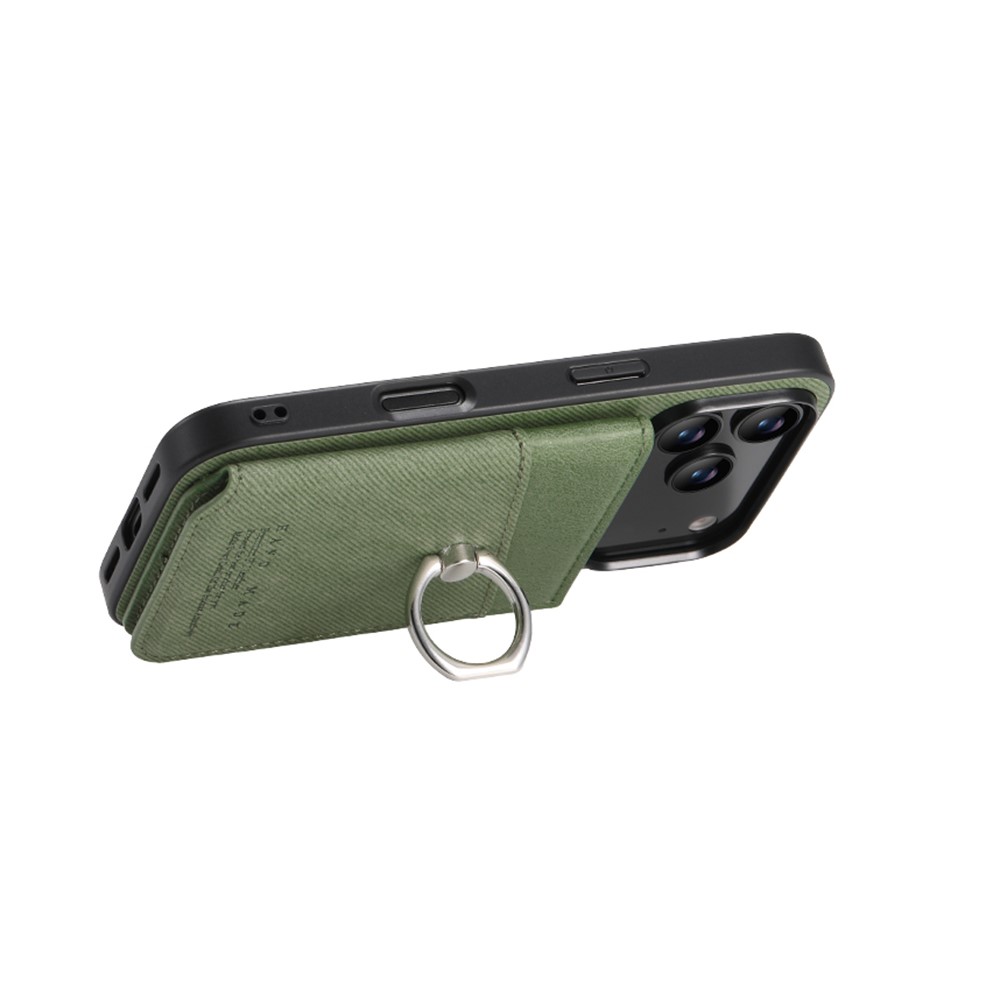 For iPhone 17 Pro Case with Card Holder Kickstand Leather + TPU + PC Phone Cover - Green