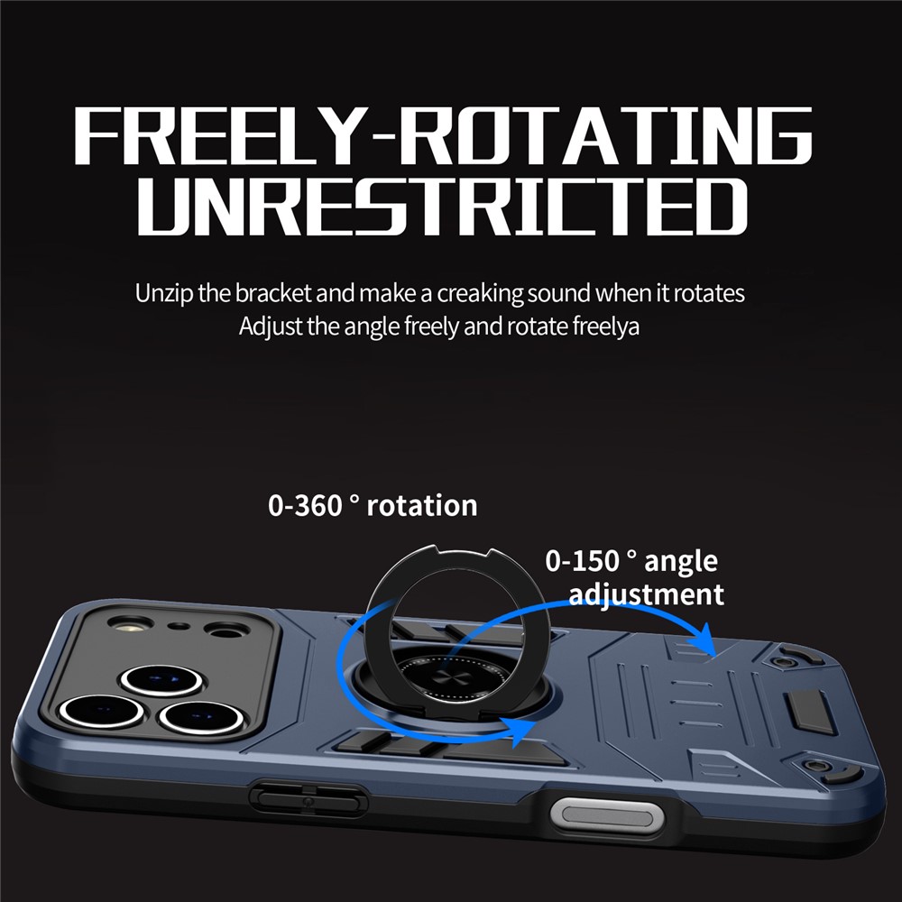 - Metal Ring Kickstand Built-in metal ring kickstand supports 360° rotation and 150° tilt adjustment, perfect for hands-free viewing in both portrait and landscape modes.