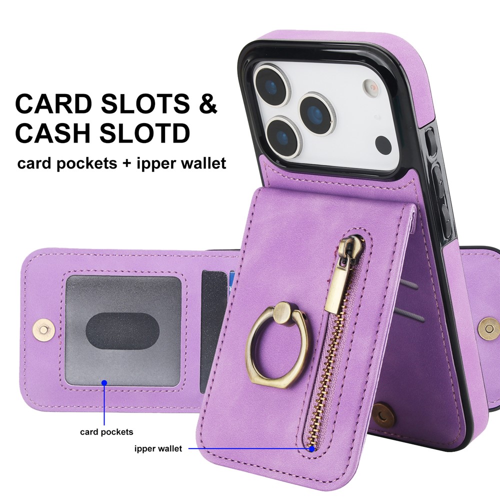- Built-In Wallet with Zipper Includes card slots and a zippered wallet, allowing you to carry your ID, bank cards, and cash conveniently