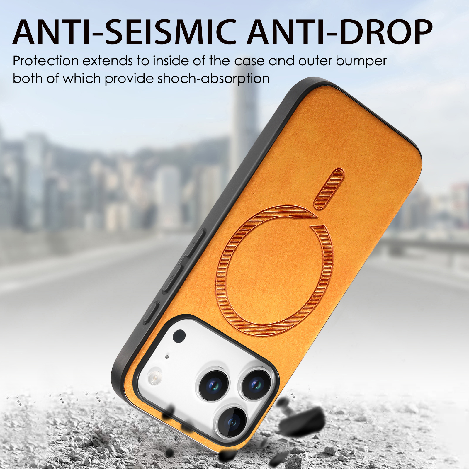 For iPhone 17 Pro Leather Back Case Compatible with MagSafe Skin-touch Phone Cover – Yellow