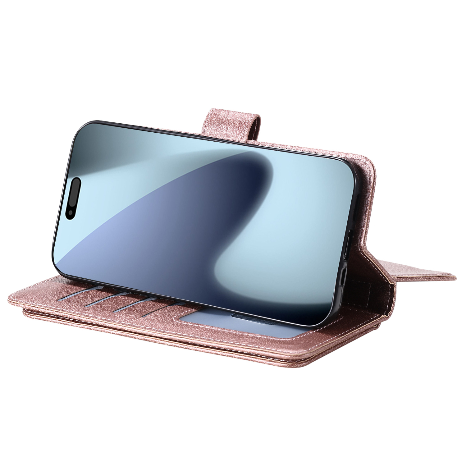 For iPhone 17 Pro Leather Case with 10 Card Holder Phone Cover Stand – Rose Gold