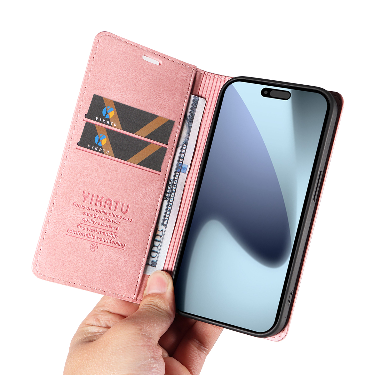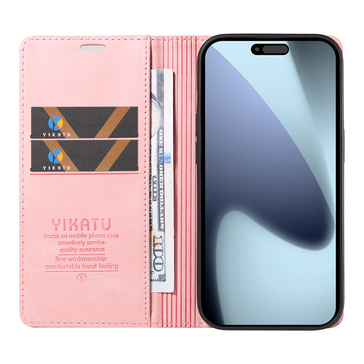 For iPhone 17 Pro Leather Cover YIKATU YK-004 Skin-Touch Wallet Phone Cases - Pink $17.60